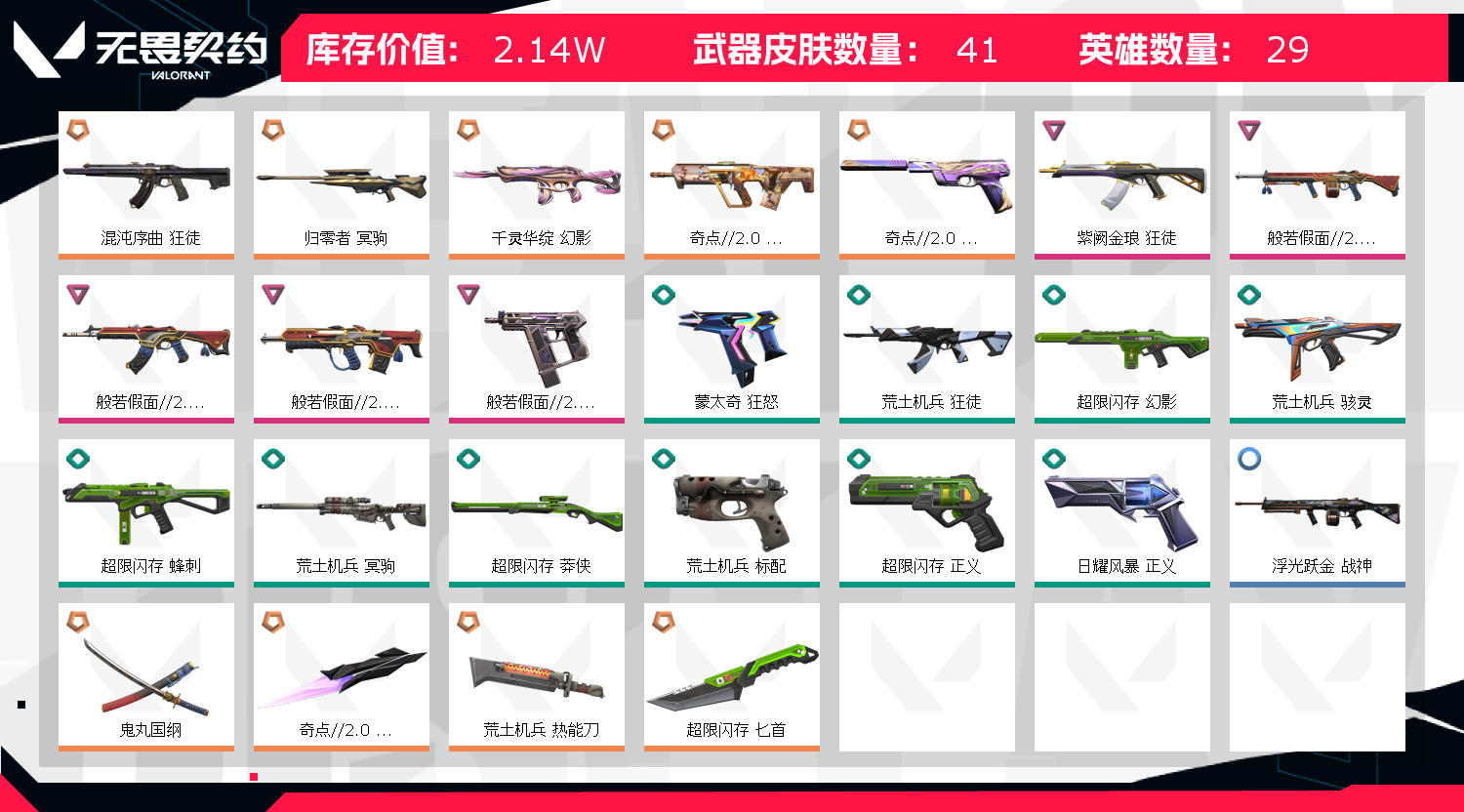 • 皮肤资产价值: 21360