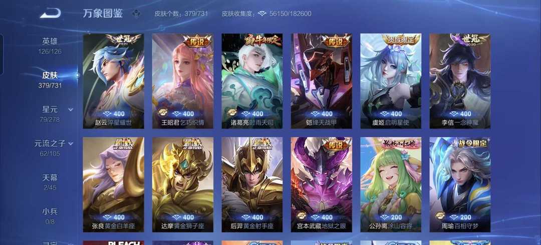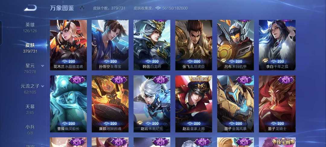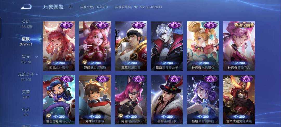 【非云直上】537满皮满典藏12星元◎鲁班新皮◎虞姬星元◎天使星元◎白金战神◎妲己绝版星元