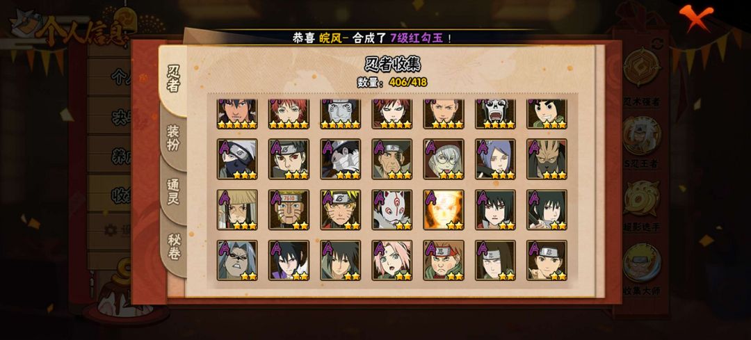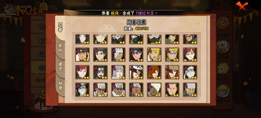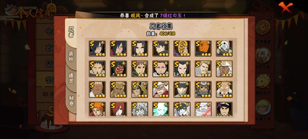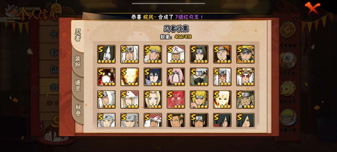 全S,96A,406忍者,全通灵全密卷,可带团本2860w+战力。