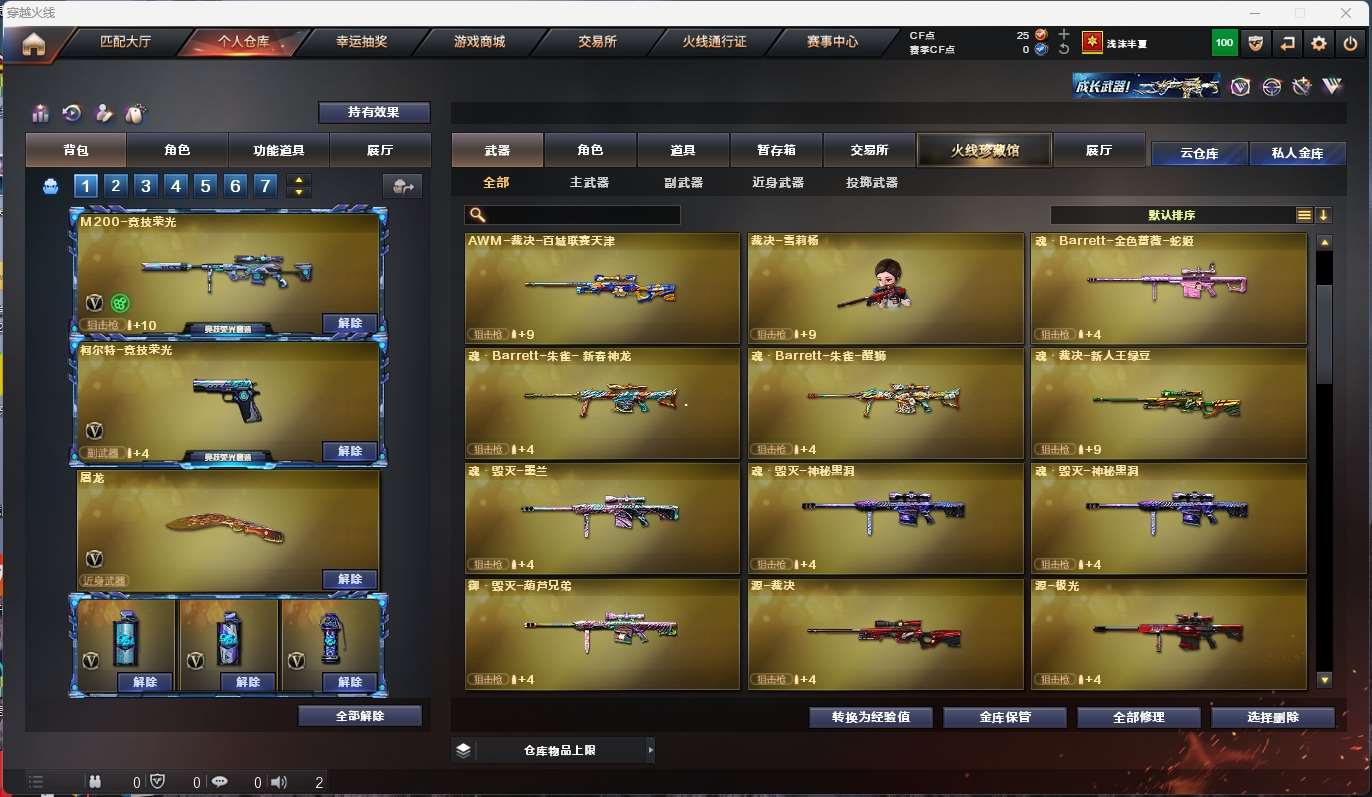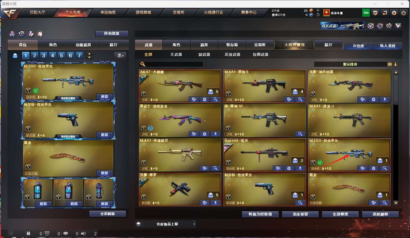 【m200幻神+m200幻神音效卡+宠儿皮肤+冠军之幻皮肤+王者幻神+传说破晓+炽芒蝶刃+传说影煞】【m200竞技荣光套装+usp雷暴+电竞教官云悠悠】【王者星神】【白虎】【qbz03金色蔷薇+冠军之薇皮肤+纸灯笼皮肤+王者芳薇】【5烈龙+斯泰尔死亡之眼】【黑武士cf网剧冠军武器套装】【荣耀世冠雷神】【雷神+宠儿皮肤+荣耀之魄皮肤+传奇n9皮肤】【火麒麟+火麒麟音效卡】【毁灭+毁灭音效卡】【黑骑士+黑骑士音效卡】【黑龙+黑龙音效卡】【王者之心 王者之武 王者之魄 王者冰魄 王者火魄 王者之势】【千变 火麒麟 黑龙 雷神 黑骑士 无影 死神 黑武士 天启 超新星 龙血 青龙 朱雀 玄武 玫瑰精灵 烈火 天龙 毁灭 极光】——【传说破晓 usp雷暴 沙鹰修罗 沙鹰天神 cop幻灵 柯尔特竞技荣光 天神cf网剧冠军武器套装 荣耀世冠柯尔特】——【炽芒蝶刃 屠龙 龙啸 擎天 麒麟刺 马来剑夜魔 幻灵之锋 擎天竞技荣光 擎天云海游龙 擎天cf网剧冠军武器套装】;USP-雷暴,荣耀世冠-柯尔特,炽芒蝶刃,传说影煞,电竞教官-云悠悠,QBZ03-金色蔷薇,M200-幻神,