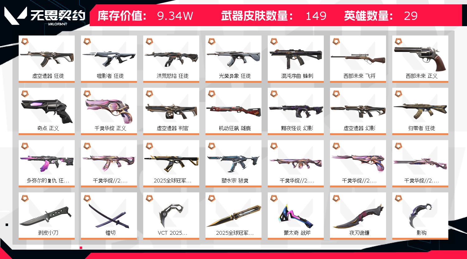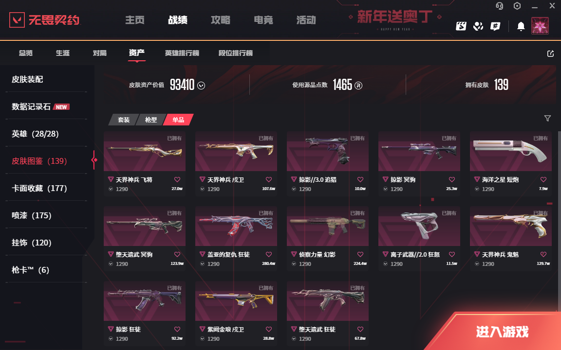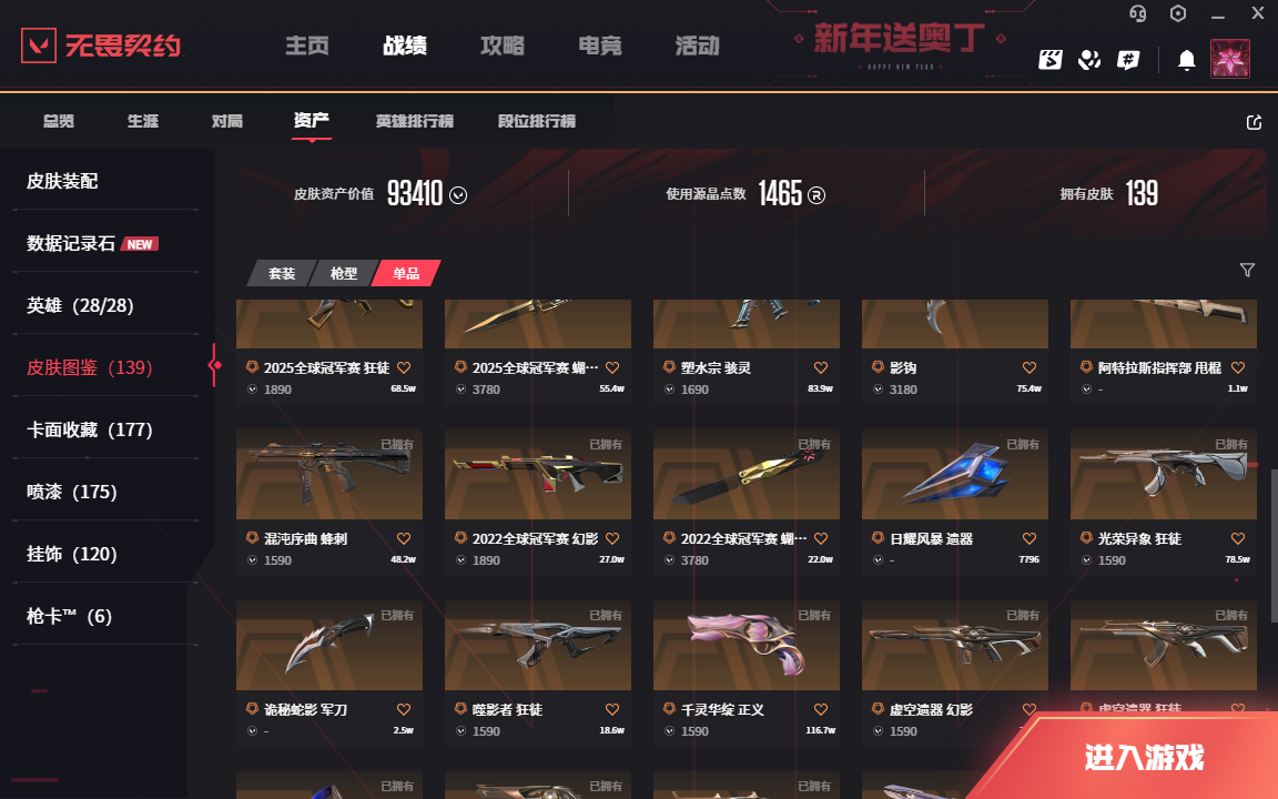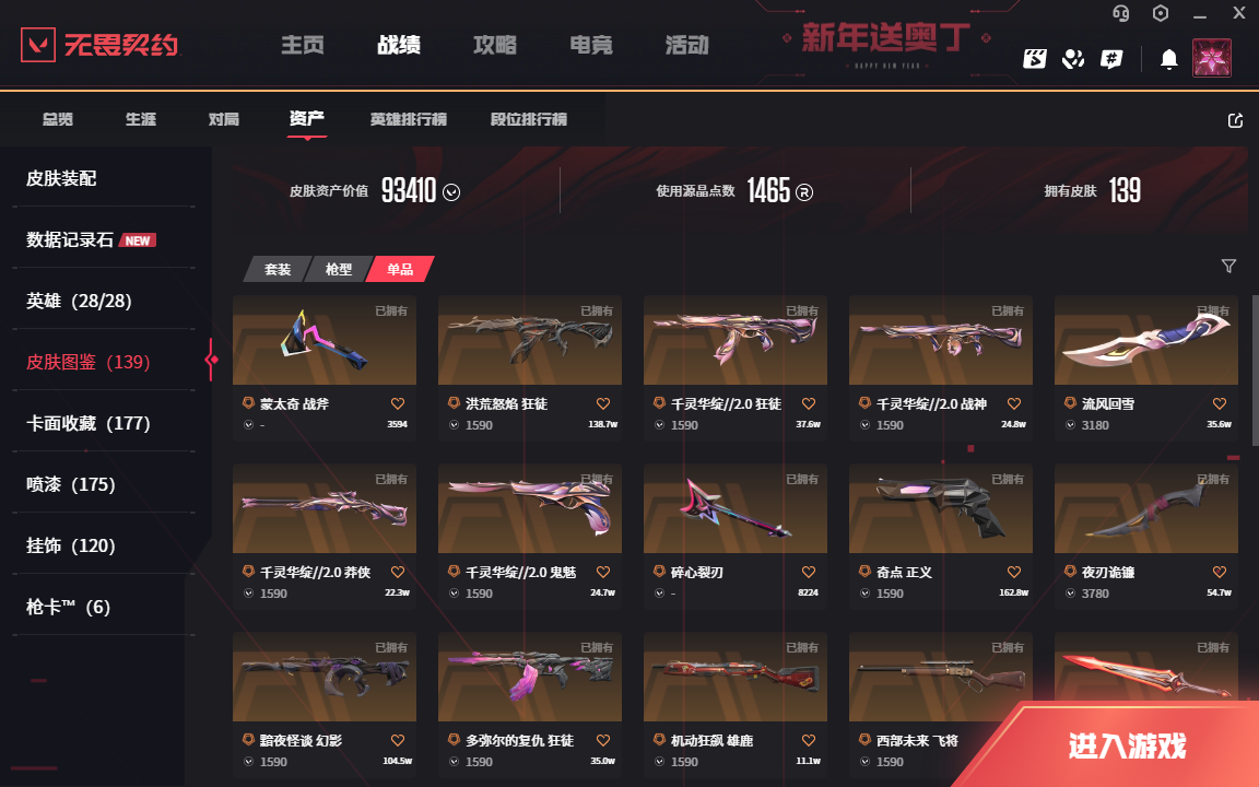 • 皮肤资产价值: 93410