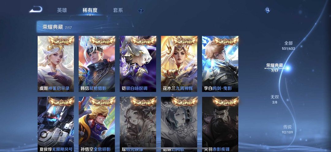 女生号 贵10 多皮肤多传说 别拿那些空号v10来比 要看性价比 貂蝉武则天夏侯惇孙悟空李白鲁班小乔荣耀水晶 妲己九尾无双皮肤 80个传说 473皮肤
