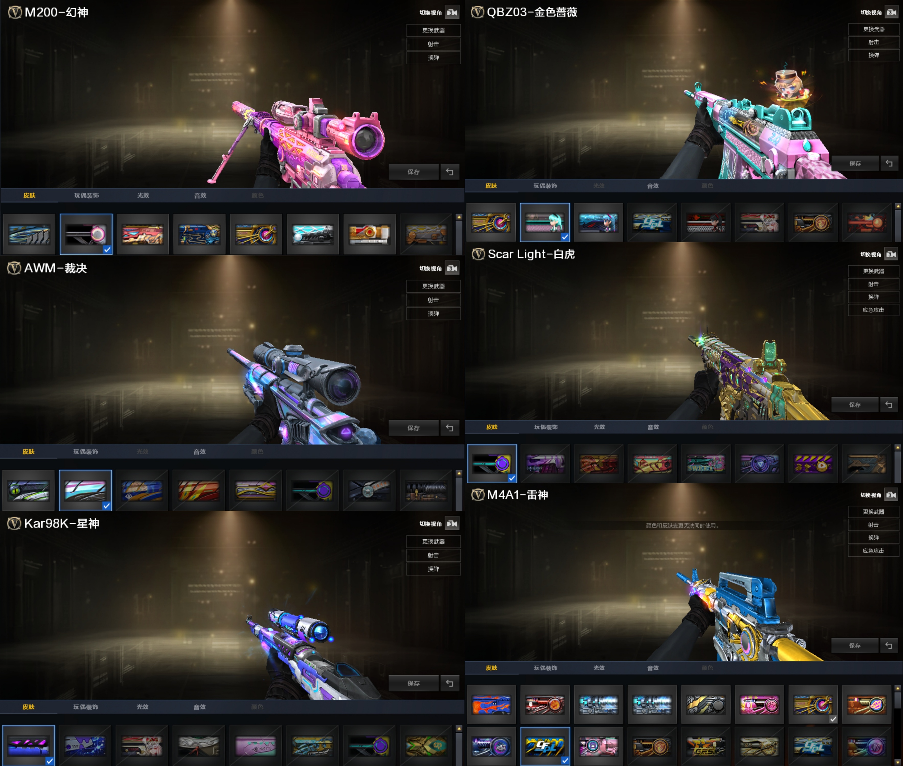 5套幻兽幽瞳幻影银翼♥幻神音效卡宠儿白鲨AG7皮♥白虎卡巅峰QBZ卡宠儿3皮♥冠特无冕雷暴2蝴蝶刀