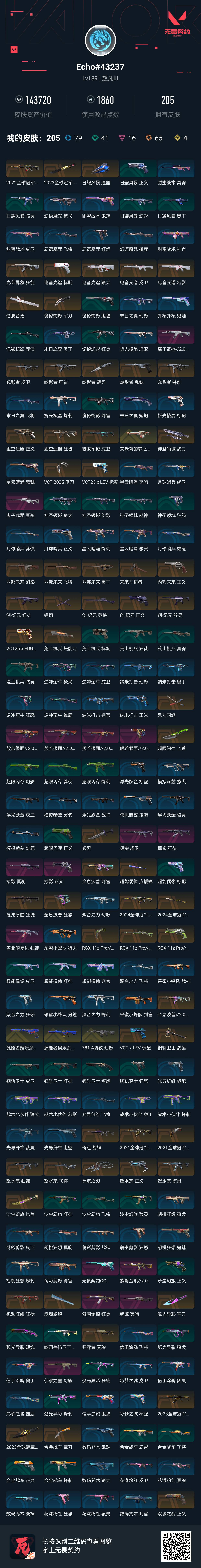 不可排位 英雄27 武器皮肤数量205 皮肤看图片;艾沃莉的梦之翼 奥丁,西部未来 奥丁,奇点 战神,黑波之刃,镭切,VCT 2025 爪刀,盖亚的复仇 狂徒,