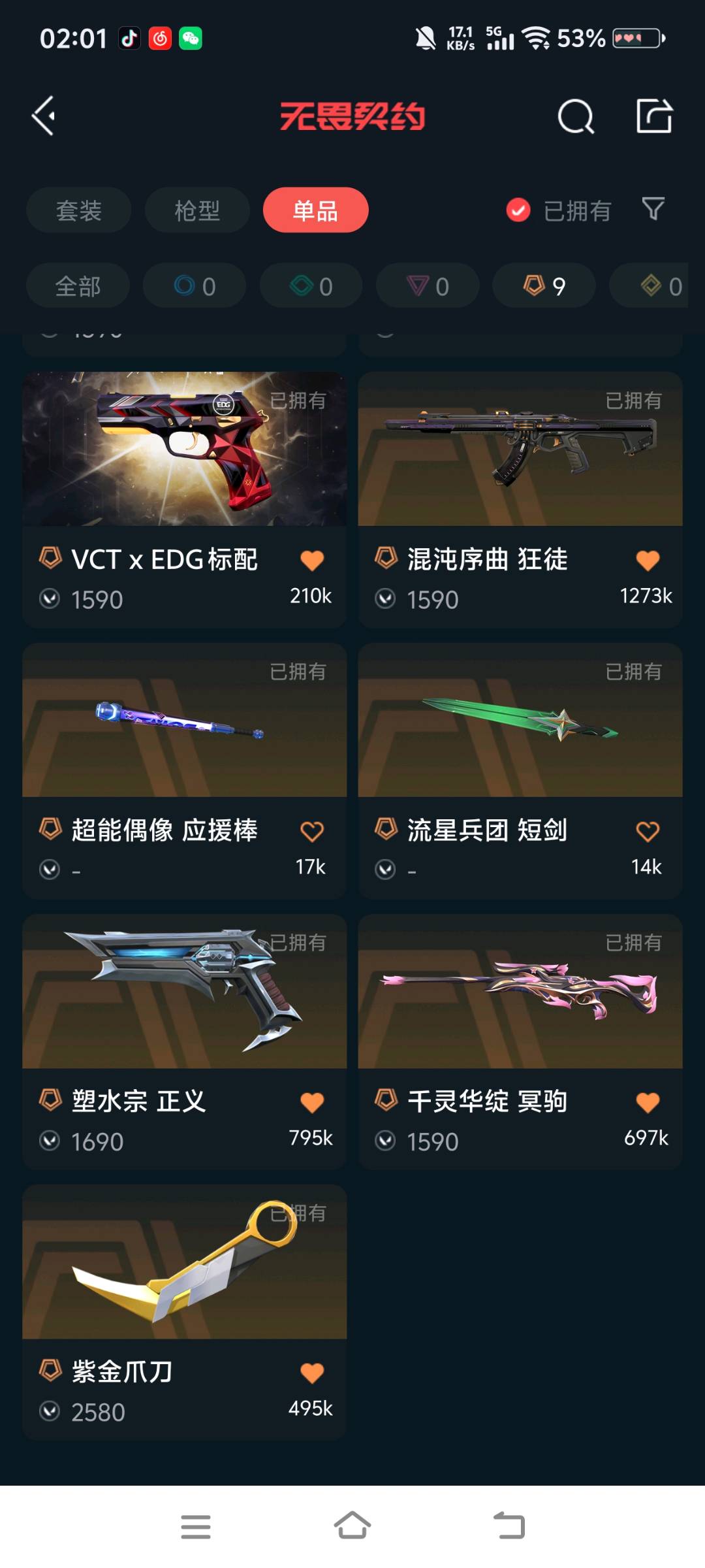 可排位 英雄27 武器皮肤数量53有紫金/盖亚/混沌?离子ak 离子m4 紫金爪刀 EDG标配;