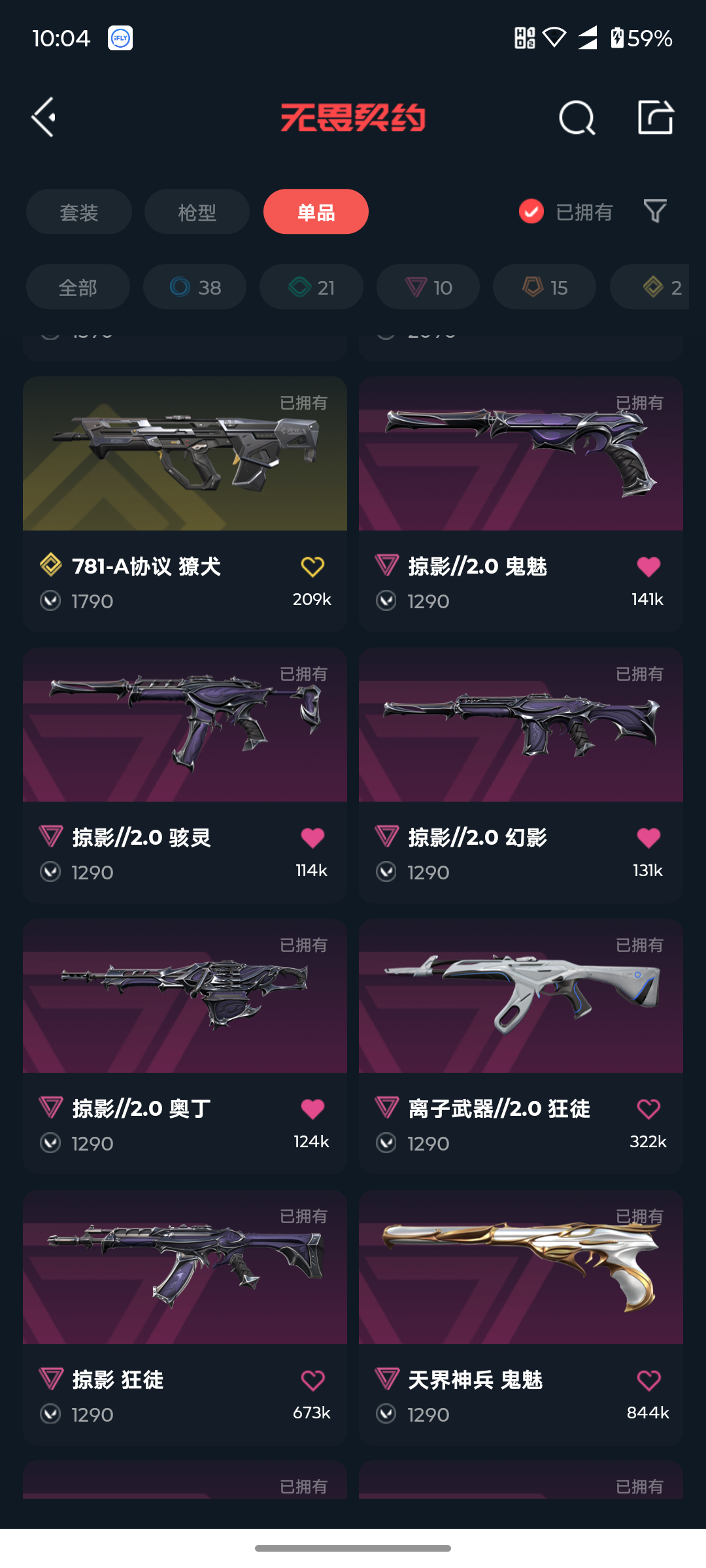 21冠军 影钩 3.0爪刀 掠夺2.0套 塑水宗/盖亚/AK 紫阙戍卫 堕天大狙 奇点正义 天神鬼魅