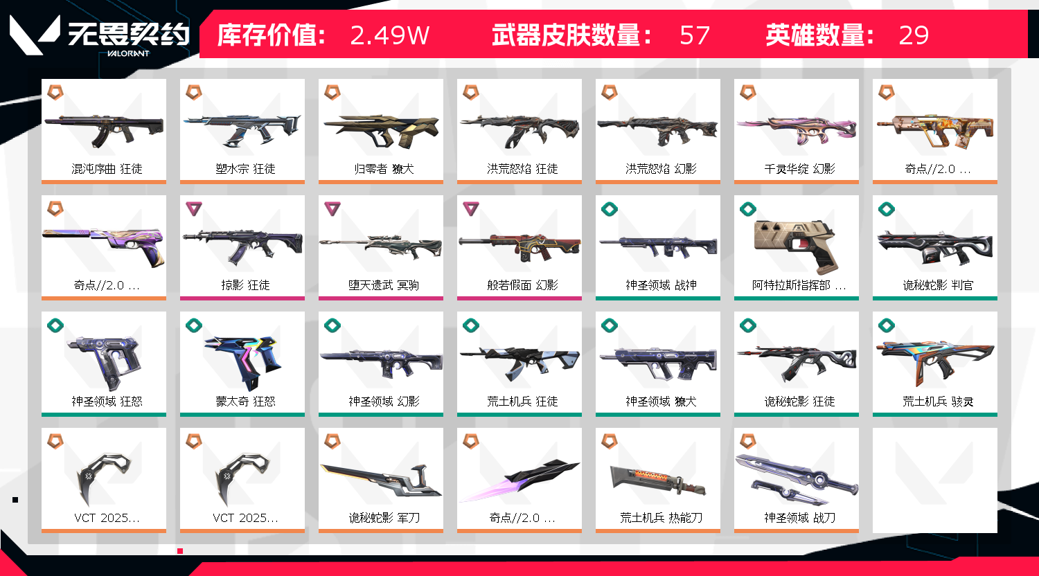 有混沌莲花流脓般若;VCT 2025 爪刀,归零者 獠犬,洪荒怒焰 狂徒,掠影 狂徒,洪荒怒焰 幻影,混沌序曲 狂徒,塑水宗 狂徒,