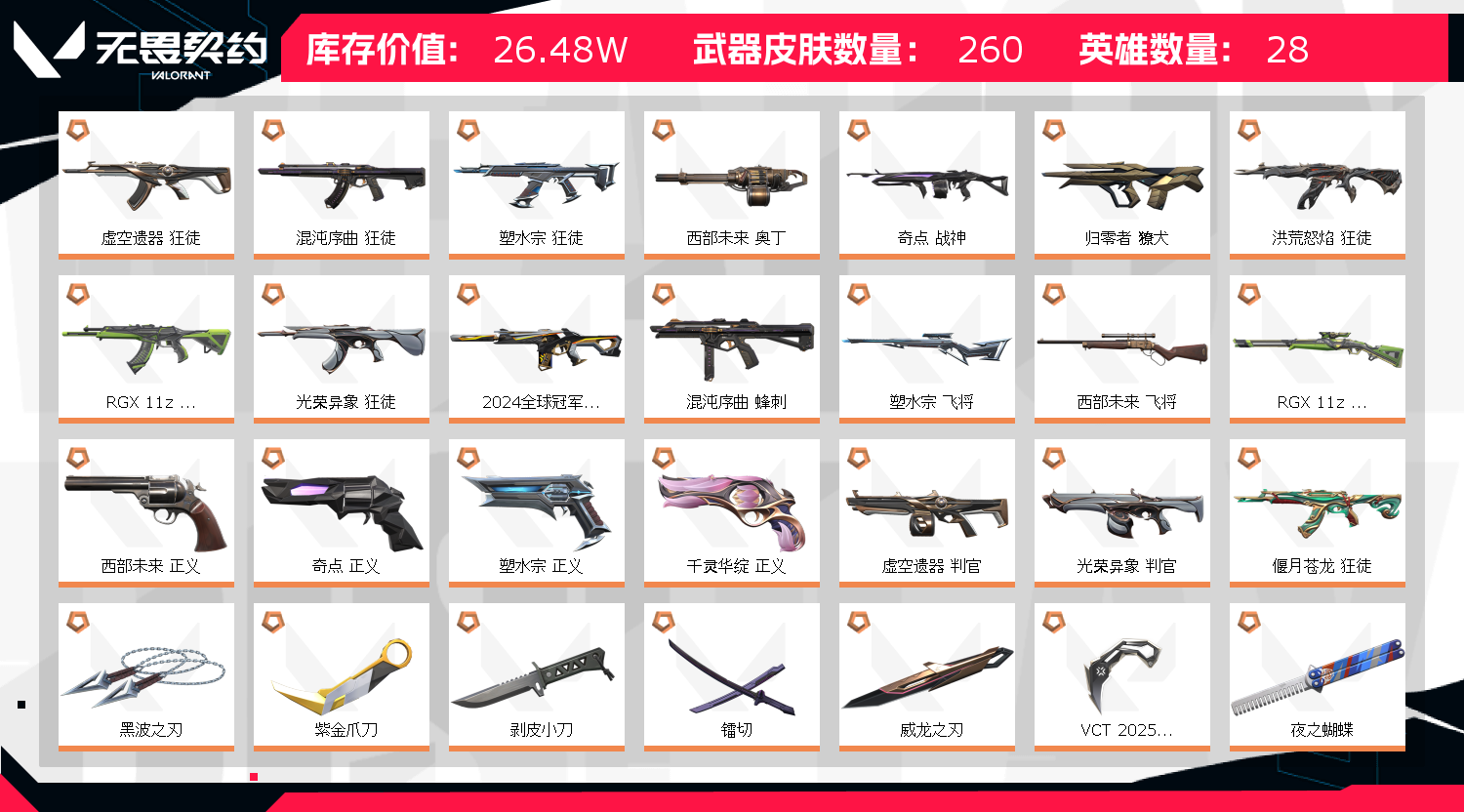 • 皮肤资产价值: 264770
