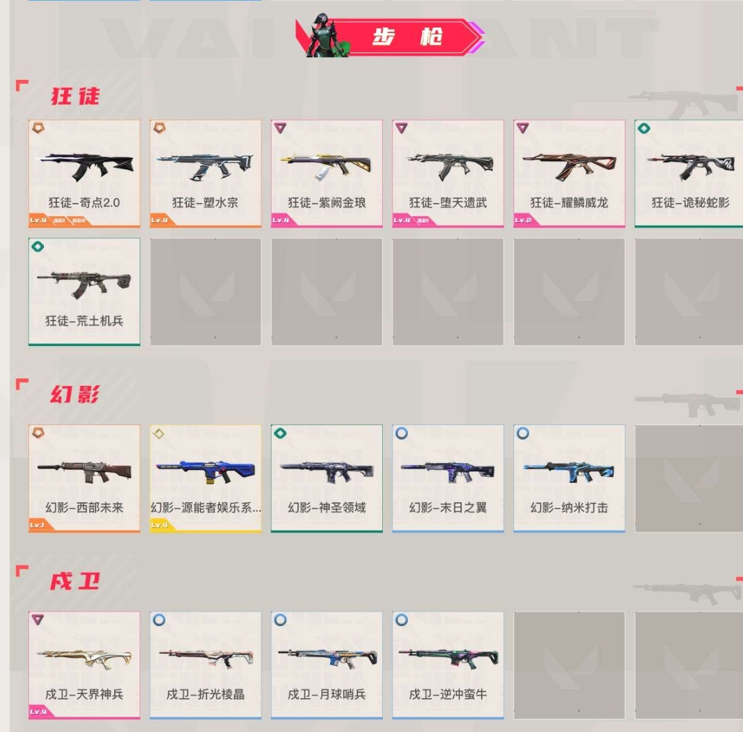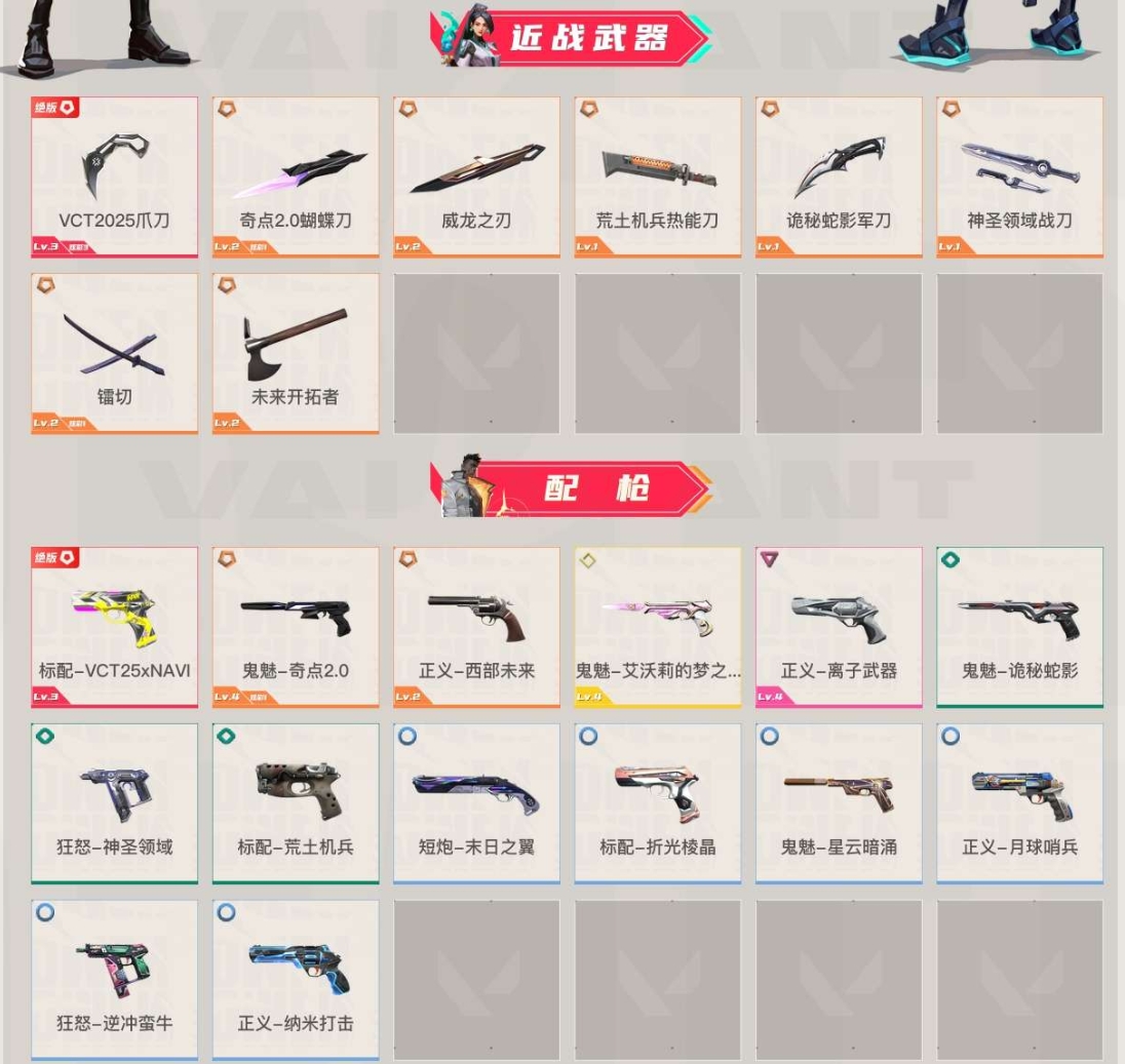 ✅冻结看wegame个人信息✅ 【近战武器】威龙之刃 奇点2.0蝴蝶刀 近战武器-镭切、近战武器-未来开拓者、近战武器-VCT2025爪刀 【鬼魅】鬼魅-艾沃莉的梦之翼、鬼魅-奇点2.0 2025VCT手枪 标配-VCT25xNAVI 狂徒-紫阙金琅、狂徒-塑水宗、狂徒-耀鳞威龙、狂徒-堕天遗武、狂徒-奇点2.0 幻影 幻影-源能者娱乐系统、幻影-西部未来 戍卫 戍卫-天界神兵 莽侠 莽侠-归零者2.0 飞将 飞将-塑水宗、飞将-西部未来 冥驹 冥驹-起源 奥丁 奥丁-西部未来;西部未来 奥丁,镭切,威龙之刃,VCT 2025 爪刀,源能者娱乐系统 幻影,紫阙金琅 狂徒,天界神兵 戍卫,