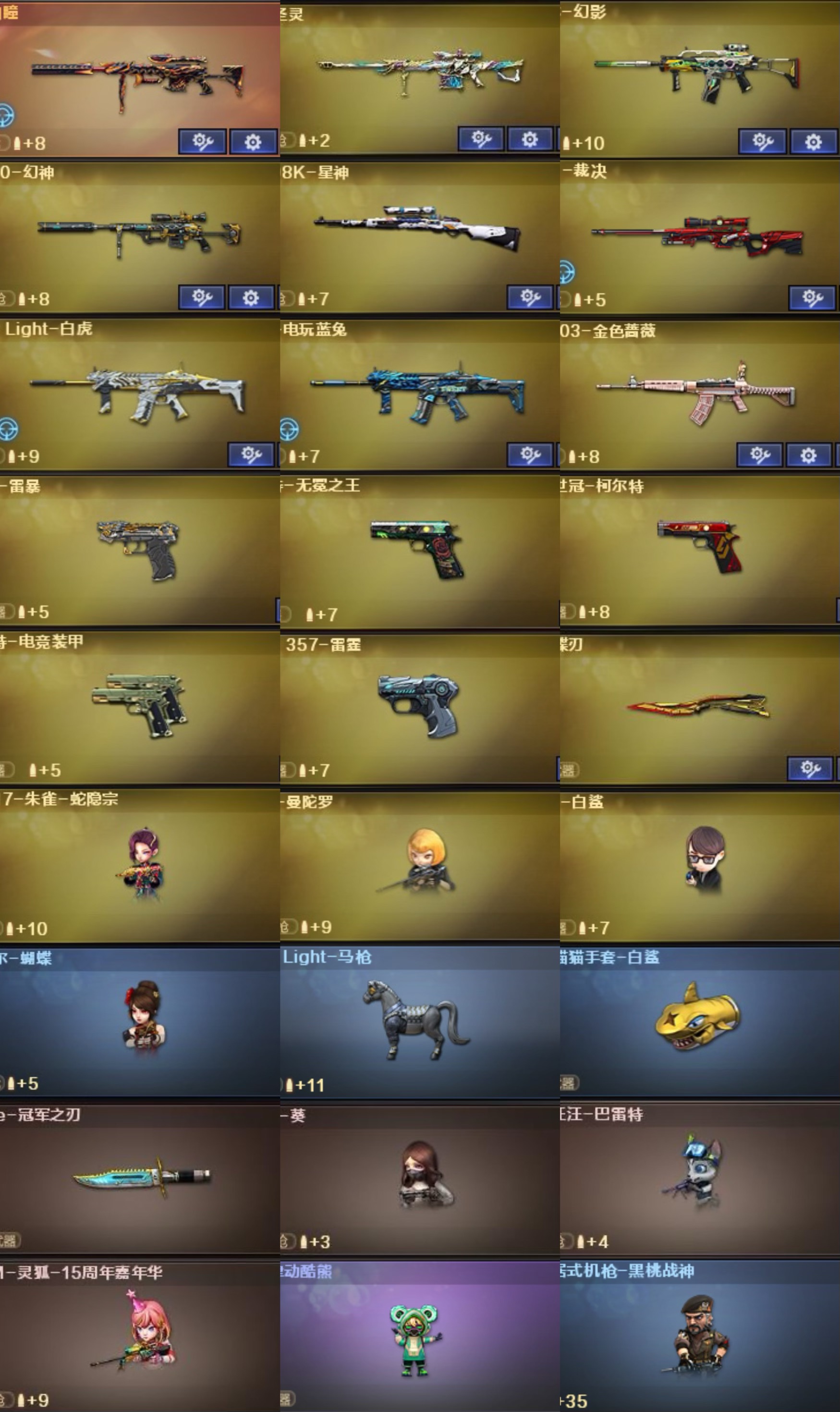 150v 传说幽瞳.圣灵✨幻神-AG-CFPL.白鲨2023.女团.N9.CFS2022.丹凤+音效✨星神-AG.巅峰荣耀+音效✨裁决-巅峰荣耀.流光秘银+音效✨幻影-破浪✨炽芒蝶刃-破浪.白鲨+冠军之刃✨斯泰尔-蝴蝶/蔷薇-女团.冠军.量子✨白虎-暗星✨雷暴+柯尔特-无冕之王.荣耀世冠.电竞装甲+COP-雷霆✨玫瑰精灵-粉色浪漫/毁灭-星耀.SV冠军.神秘黑洞.百城.耀金+音效/雷神-荣耀.女团.R.LGD冠军.传奇N9.虎将.音效/火麒麟-百城.白虎.传奇.再燃火线.关羽.AG.STAR+音效/黑骑士-伏羲.娜塔莉娅.破浪十年+音效/修罗-冠军.STAR.星空/天神-幻能/屠龙-荣耀.巅峰.破浪/龙啸-巅峰.纸灯龙/擎天-冠军/麒麟刺-月/谜/关小羽/晴雅/炫/魅影/月兔特工/乔伊教练/奇洋探员/战地猎狐/雪域霜狐/蛇隐宗/云海玲珑/电竞少女/电光少女/灵动武士/空/兰-海滩派对/樱-战斗天使/王者沙漠玫瑰.云悠悠.魅影.葵-翩若惊鸿/13音效卡等;USP-雷暴,柯尔特-无冕之王,荣耀世冠-柯尔特,炽芒蝶刃,Knife-冠军之刃,晴雅,王者沙漠玫瑰,
