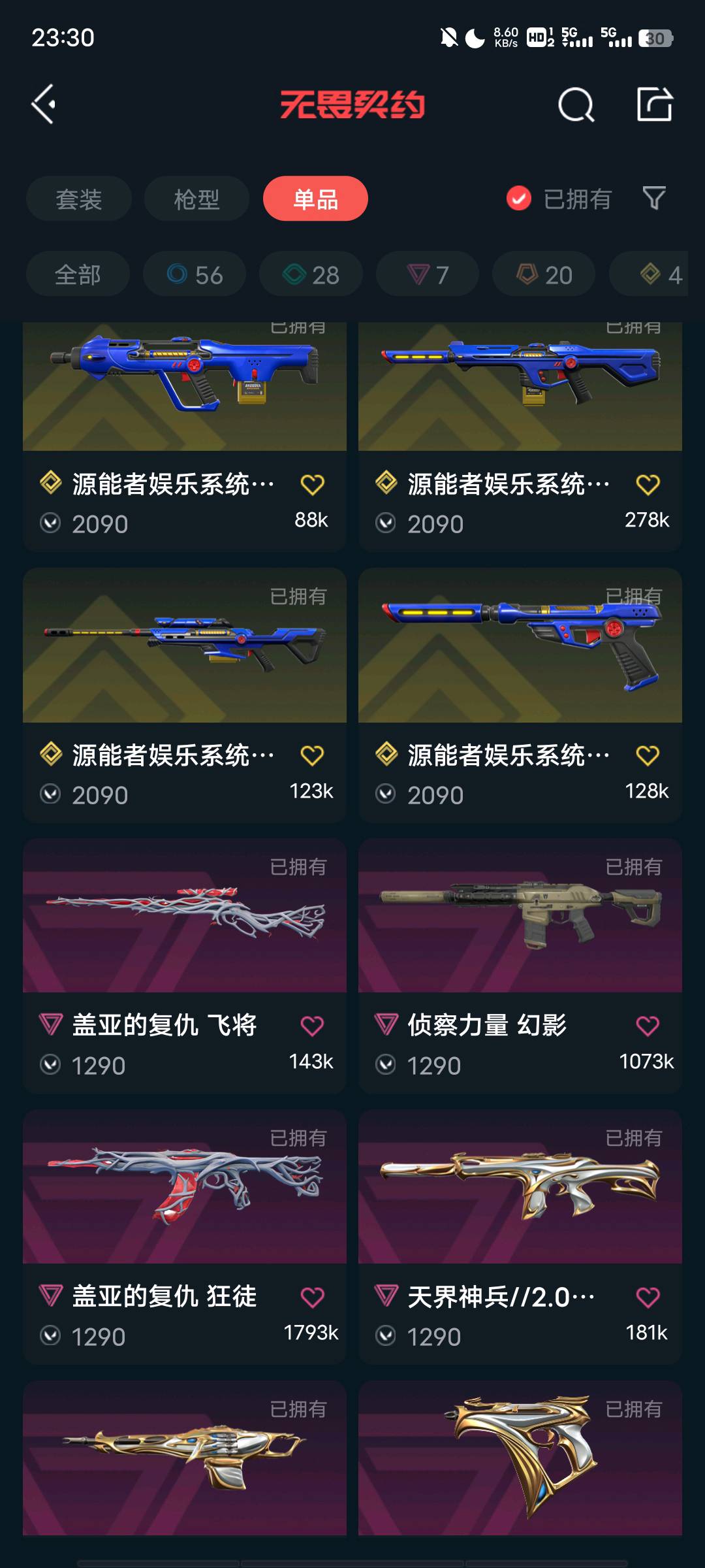 1;天界神兵//2.0 幻影,盖亚的复仇 狂徒,源能者娱乐系统 幻影,侦察力量 幻影,混沌序曲 狂徒,西部未来 正义,千灵华绽 正义,