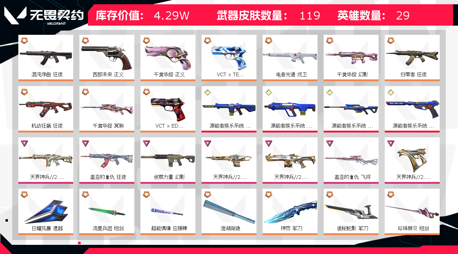 首页 > 租号大厅 > 无畏契约-wegame > wegame/wegame > 白银可排杀太多拉黑❤️莲花电玩天界套美女号❤️归零混沌盖亚摩托狂徒❤️侦察幻影❤️天御刀