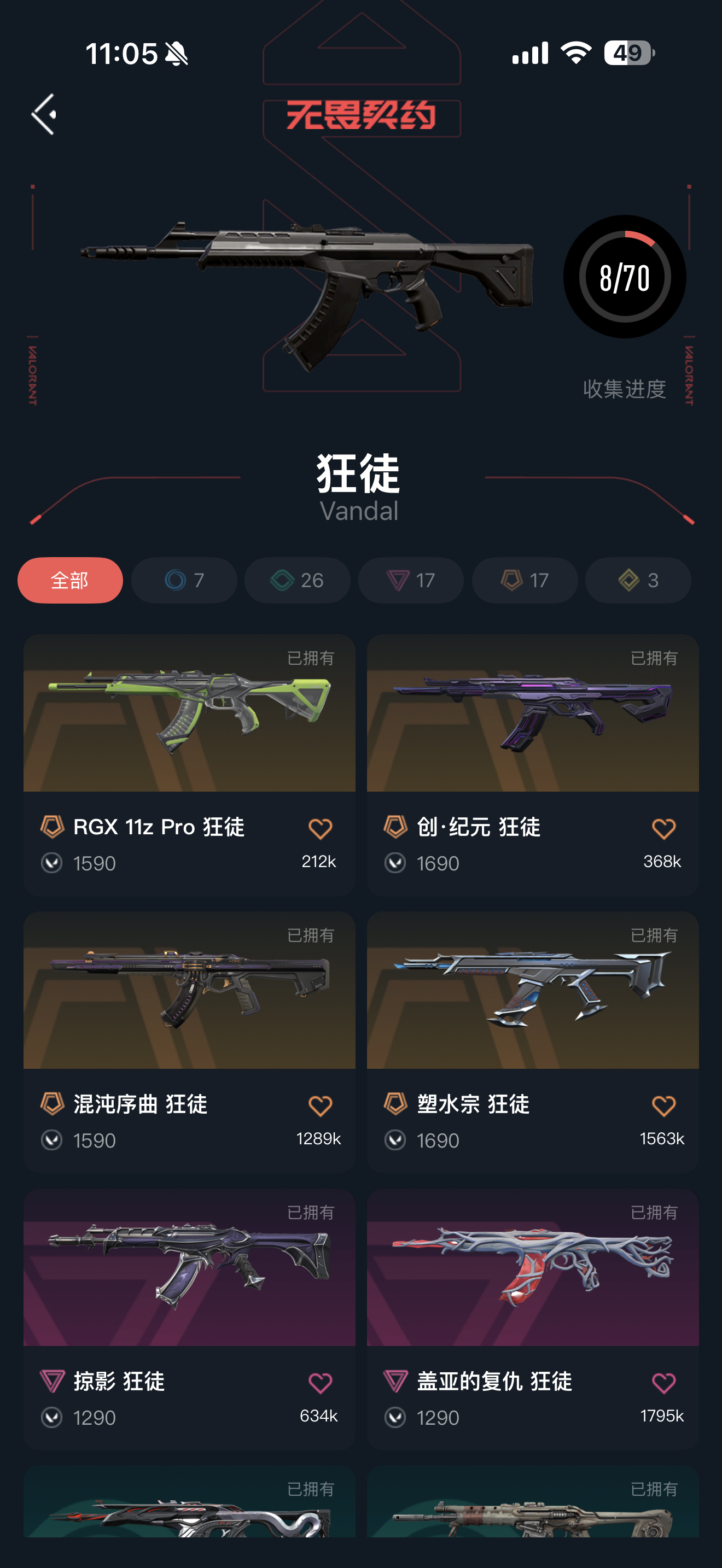 如果喜欢某个颜色的墙皮可以直接拿r点升;黑波之刃,镭切,盖亚的复仇 狂徒,掠影 狂徒,洪荒怒焰 幻影,RGX 11z Pro 狂徒,天界神兵 戍卫,