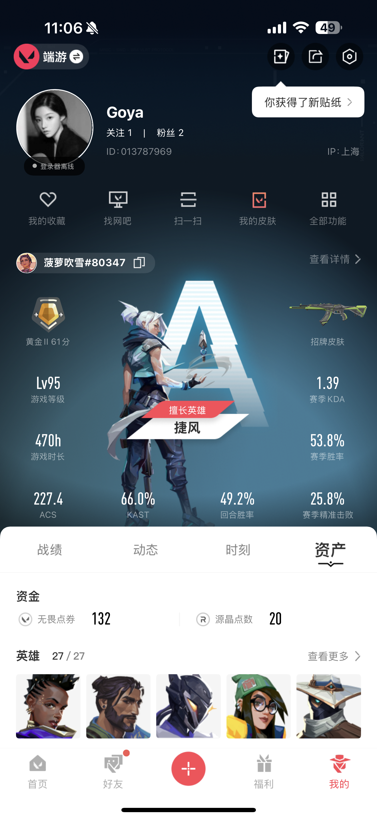 • 游戏区服:无畏契约-wegame / wegame / wegame