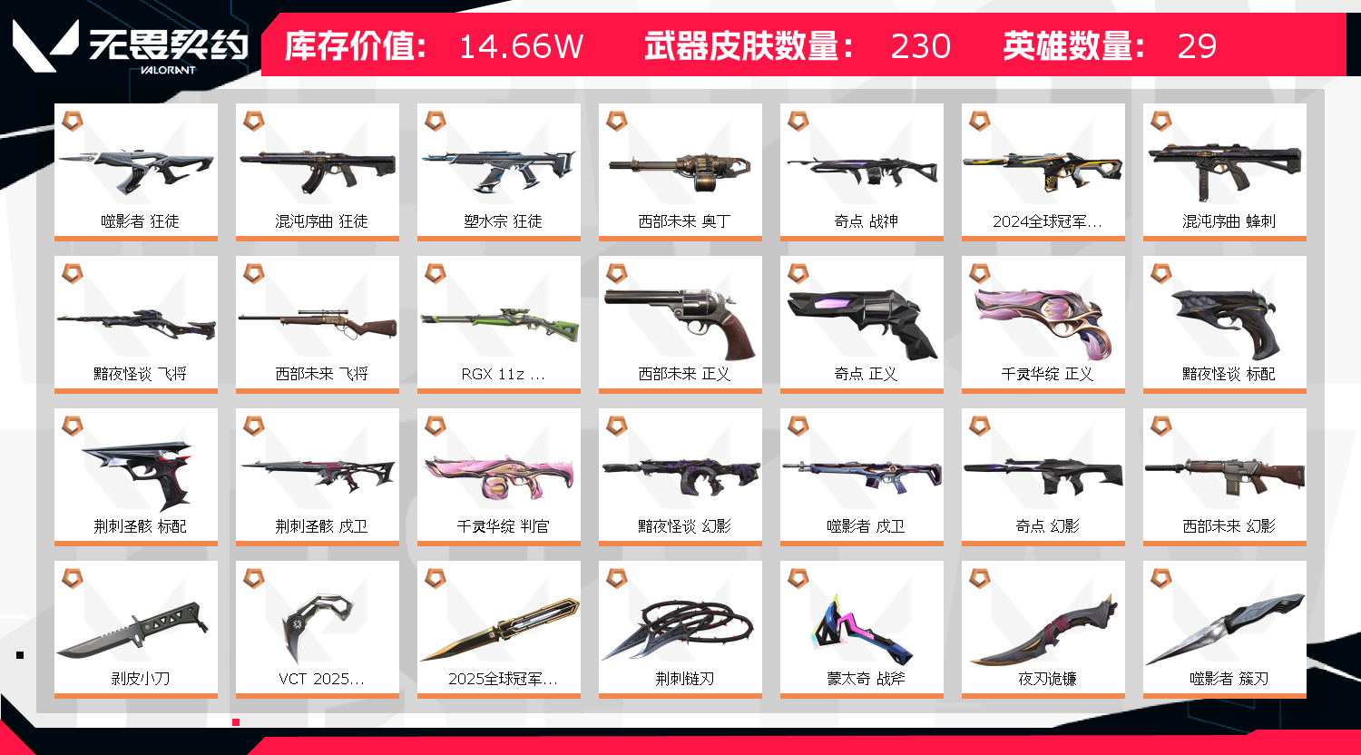 首页 > 租号大厅 > 无畏契约-wegame > wegame/wegame > 冻结秒解可排位14W库存玫瑰套 26刀 怜悯22/24/25 冠军套颗秒套莲花套混沌套