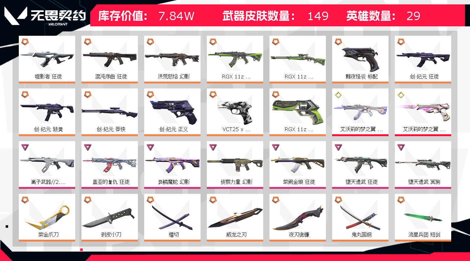首页 > 租号大厅 > 无畏契约-wegame > wegame/wegame > 冻结秒解✨8W库全特效显卡创纪元般若套✨12热门刀12狂徒混沌噬影创纪元艾莉沃盖亚紫金离子耀鳞堕天