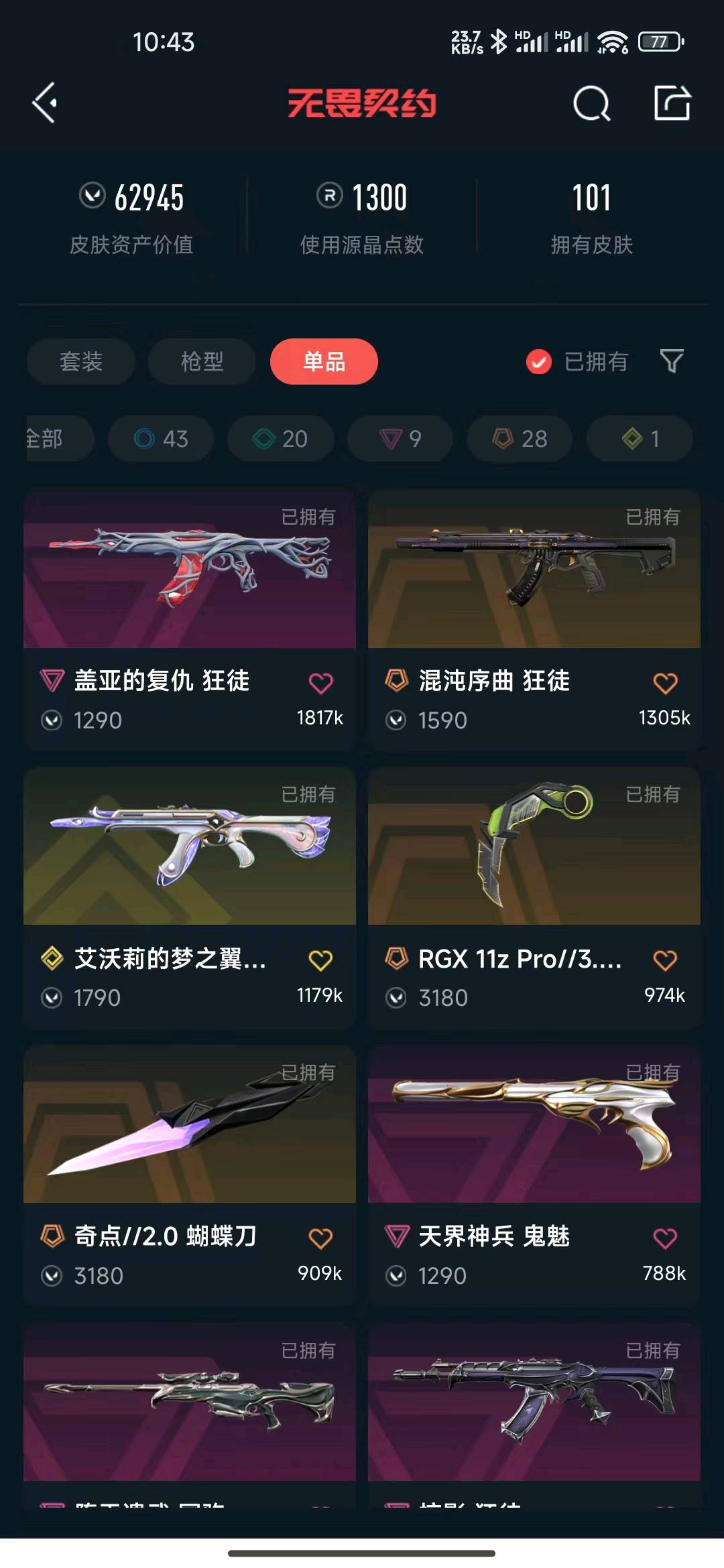 • 武器皮肤数量: 107