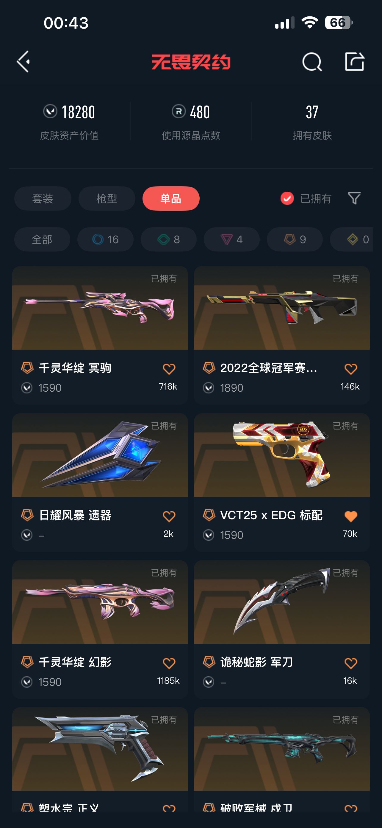 • 皮肤资产价值: 18280