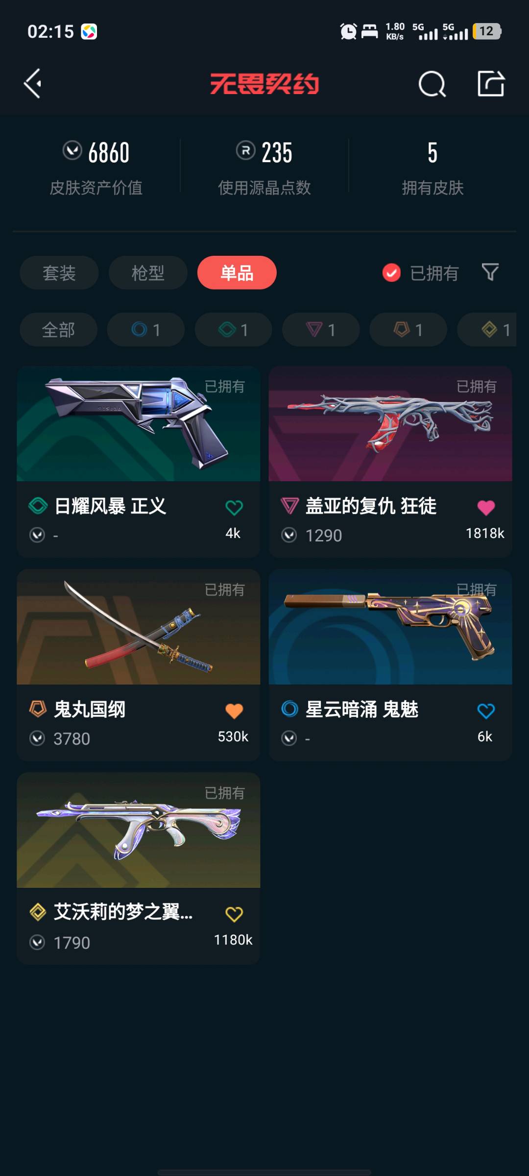 • 皮肤资产价值: 6860