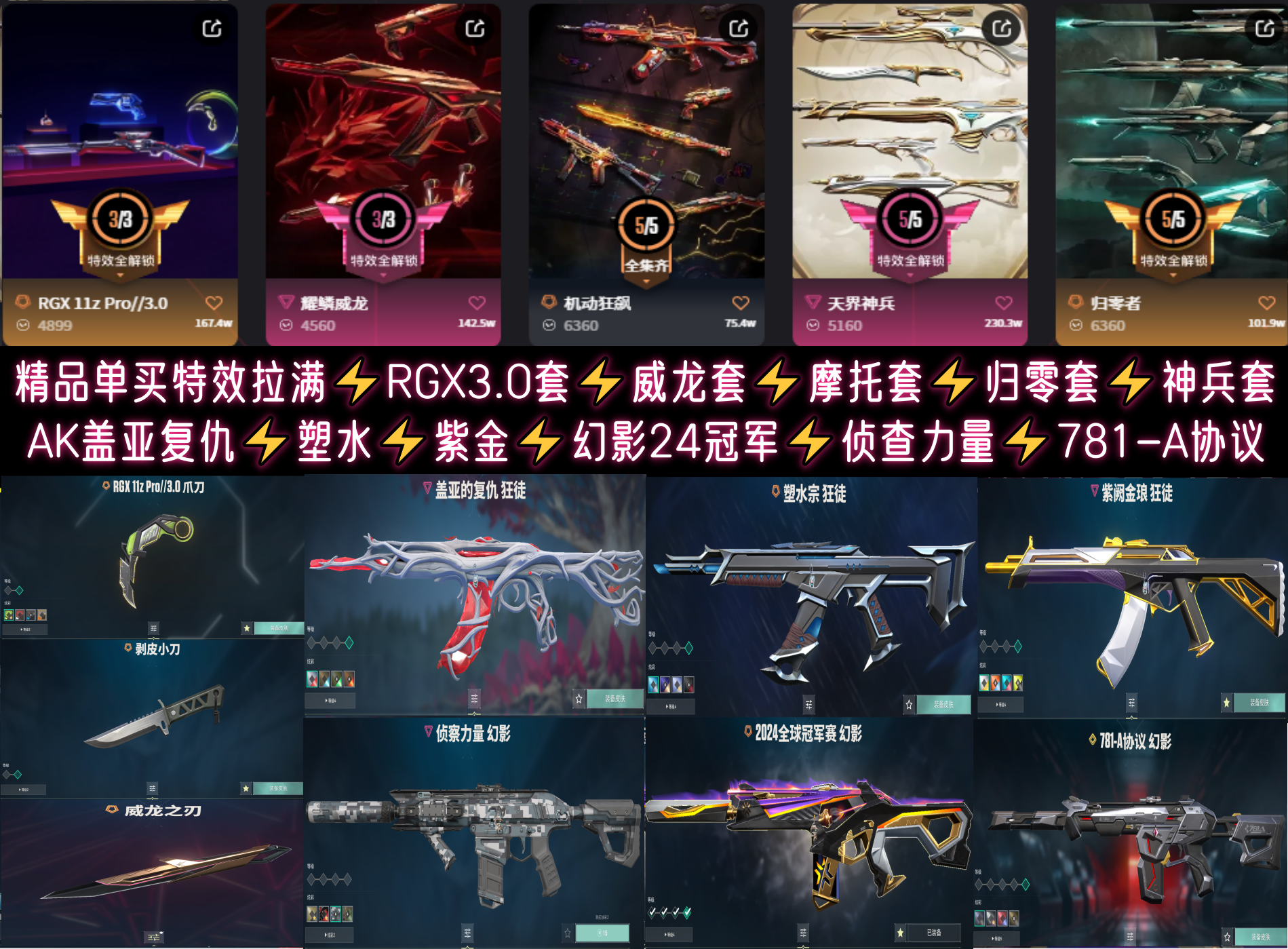 极品15刀⚡RGX3.0套摩托套归零者威龙套天界神兵套⚡AK盖亚塑水归零紫金⚡22冠军侦查A协议电音