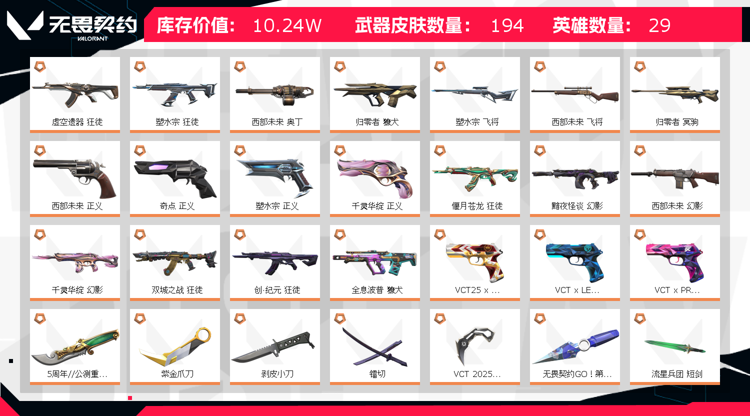 首页 > 租号大厅 > 无畏契约-wegame > wegame/wegame > 10万库存✨190皮46橙18紫2金✨22冠军套✨西部套✨神中罚套✨堕天套✨塑水宗套✨公测重制绝版刀