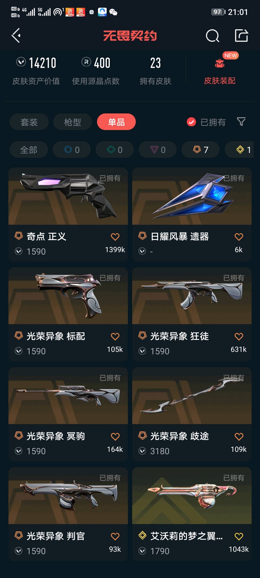 • 皮肤资产价值: 14210