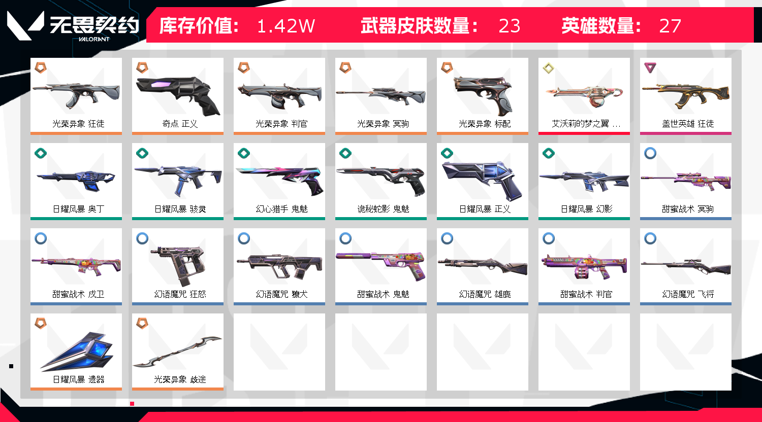 首页 > 租号大厅 > 无畏契约-wegame > wegame/wegame > 允许 英雄26 武器皮肤数量23