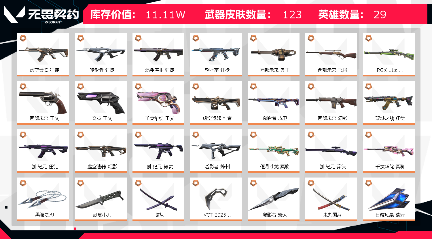 • 皮肤资产价值: 111100