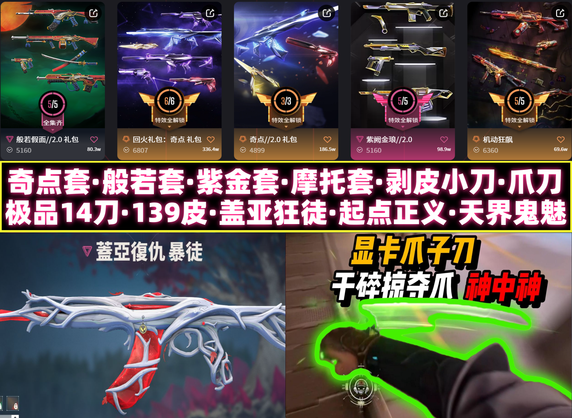 5套装⚡极品14刀⚡剥皮小刀RGX爪刀蝴蝶刀紫金爪刀⚡盖亚流脓塑水偃月狂徒起点正义天界鬼魅奇点摩托套