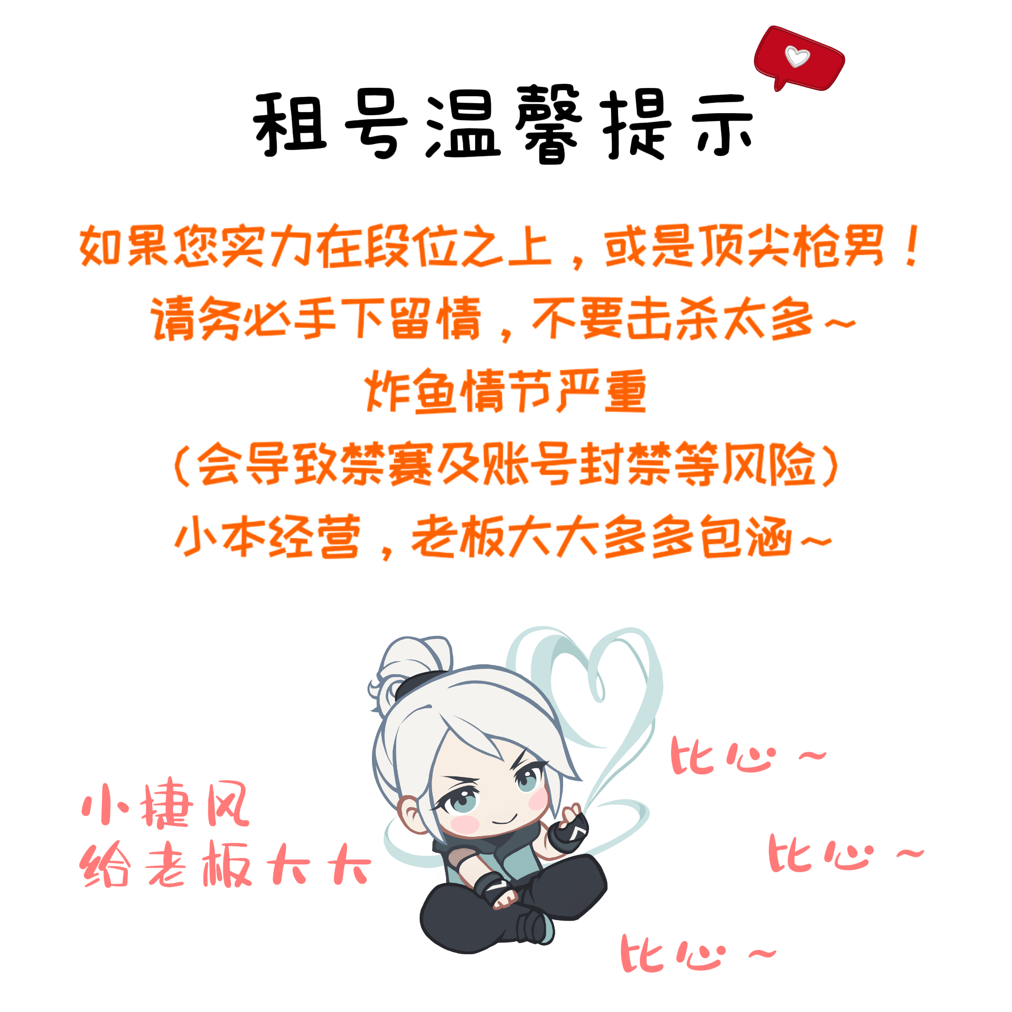 • 租号限制:起租时间2小时,租号0次及以上才可租用此号