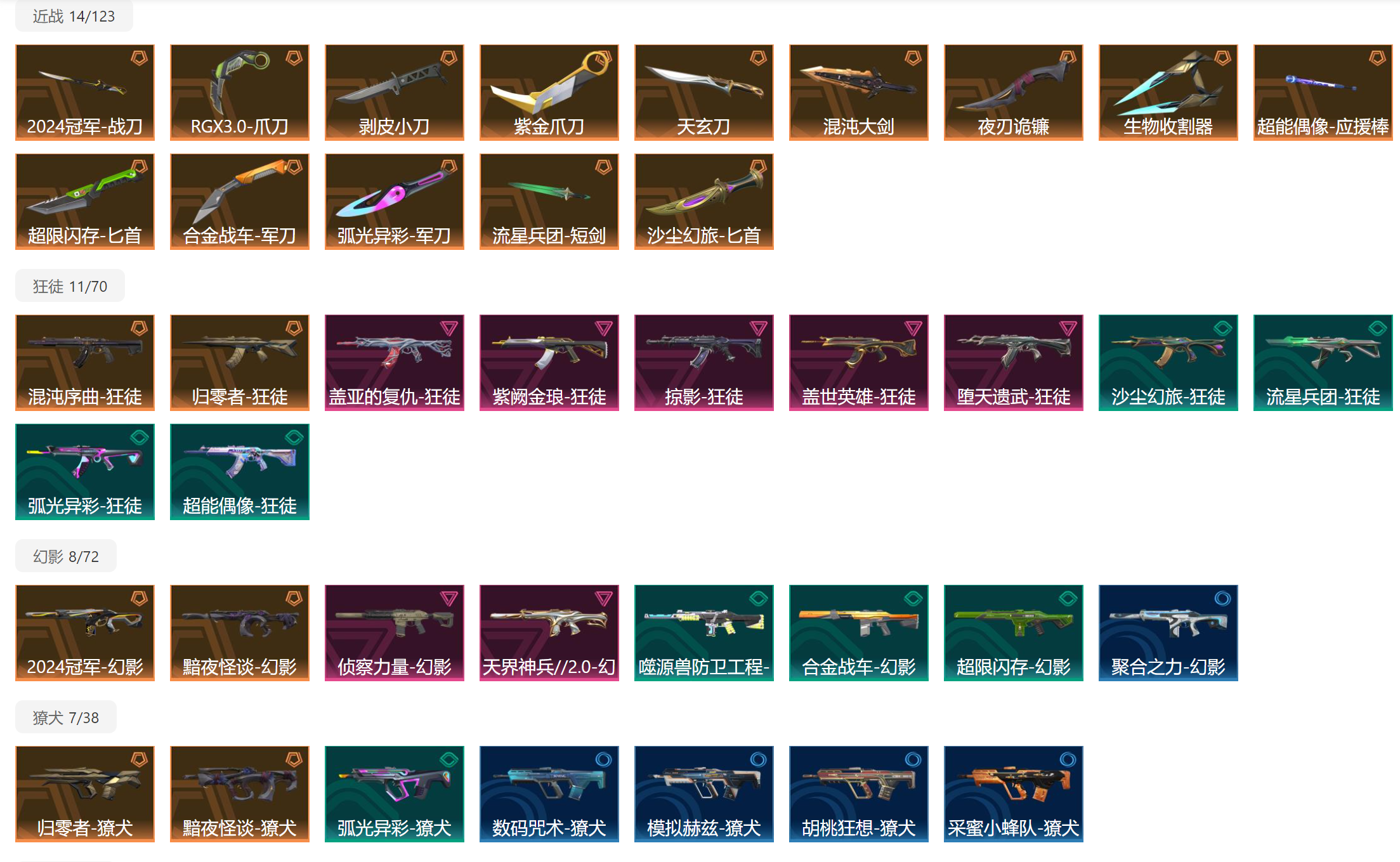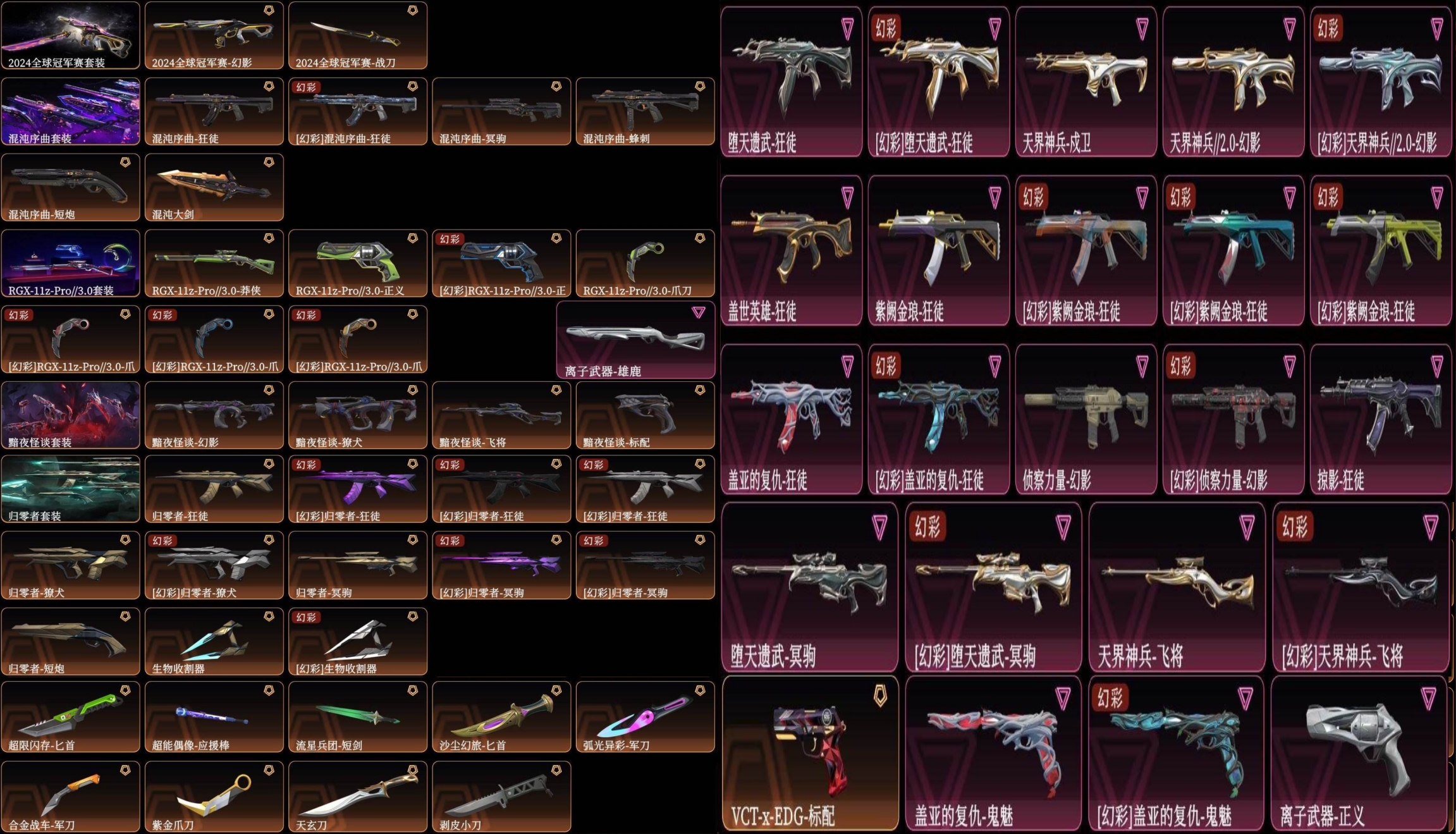 首页 > 租号大厅 > 无畏契约-wegame > wegame/wegame > 24冠军套⚡极品14刀122皮肤⚡剥皮小刀⚡RGX套3.0爪刀⚡混沌套归零套黯夜套⚡盖亚紫金掠影狂徒