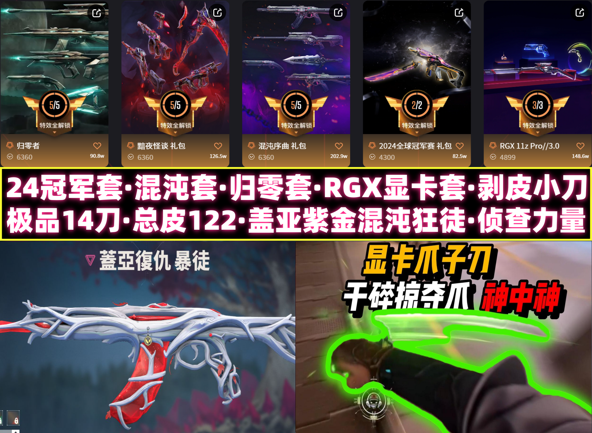 24冠军套⚡极品14刀122皮肤⚡剥皮小刀⚡RGX套3.0爪刀⚡混沌套归零套黯夜套⚡盖亚紫金掠影狂徒