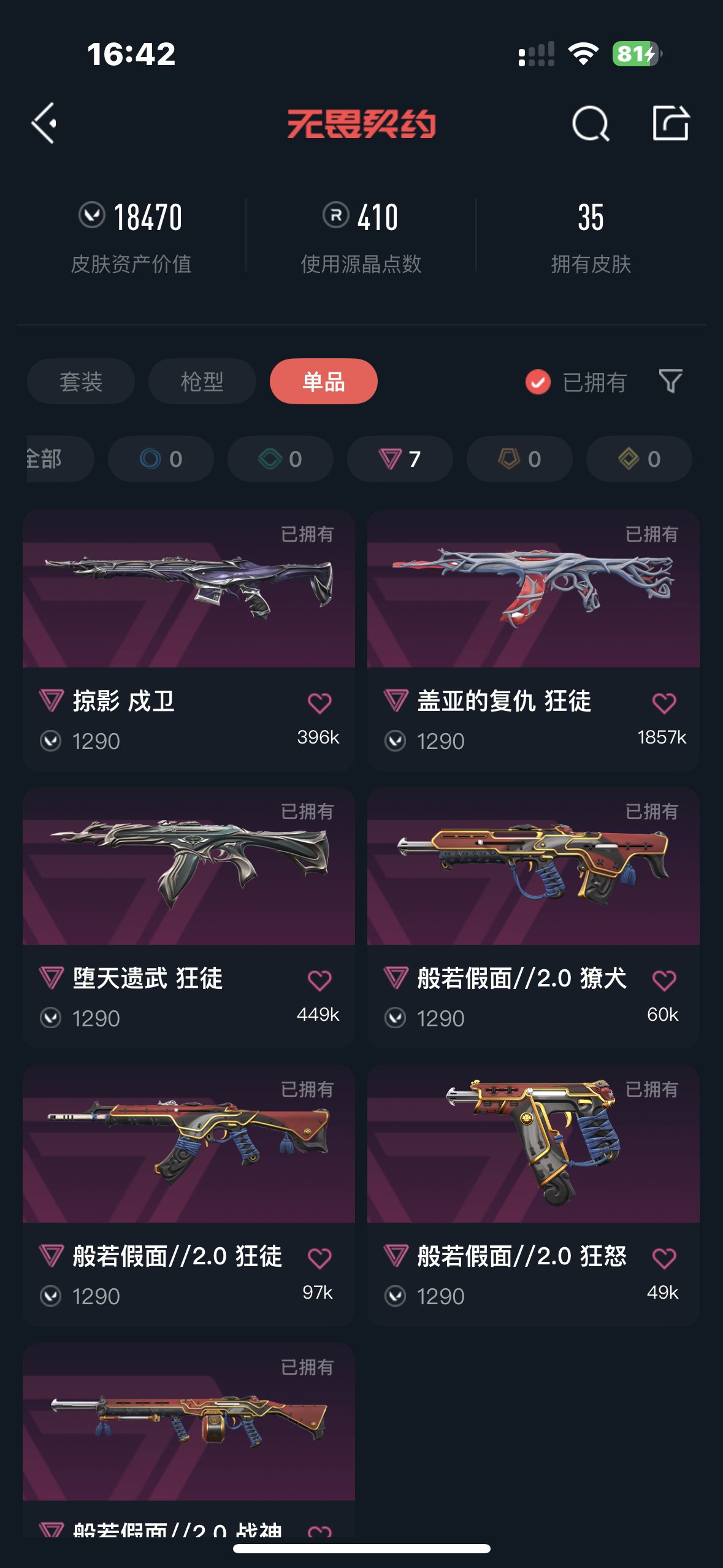 皮肤一般般;盖亚的复仇 狂徒,掠影 戍卫,堕天遗武 狂徒,