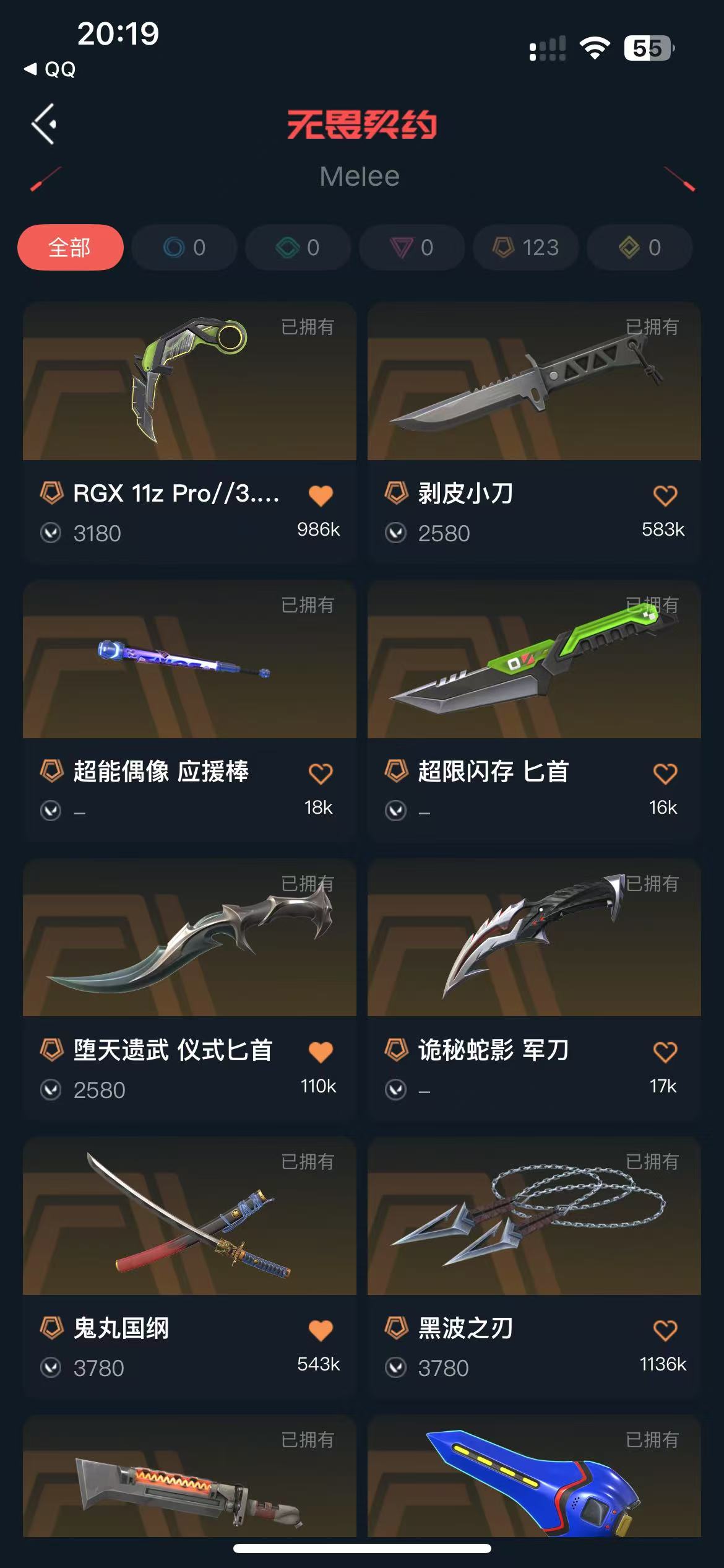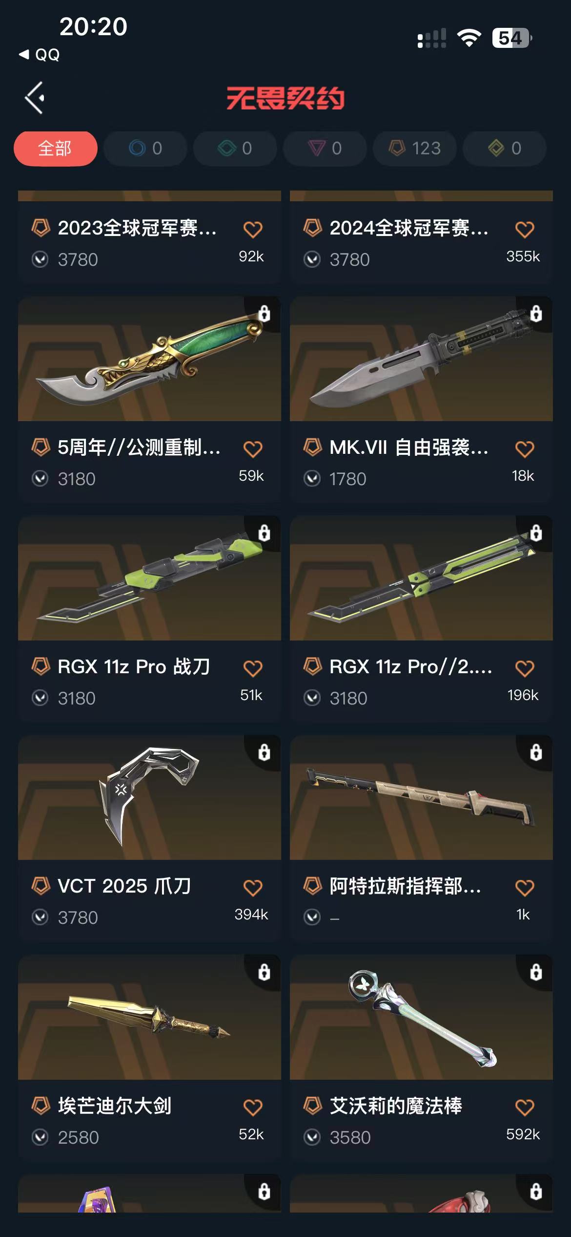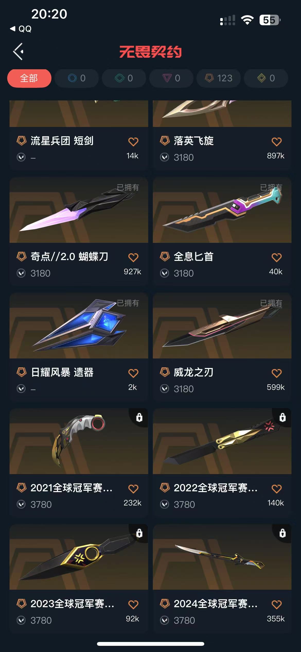 8.3W库存总皮120.黑波 爪刀 落英 蝴蝶 盖亚复仇 艾沃莉 侦查 4套装 极品多多