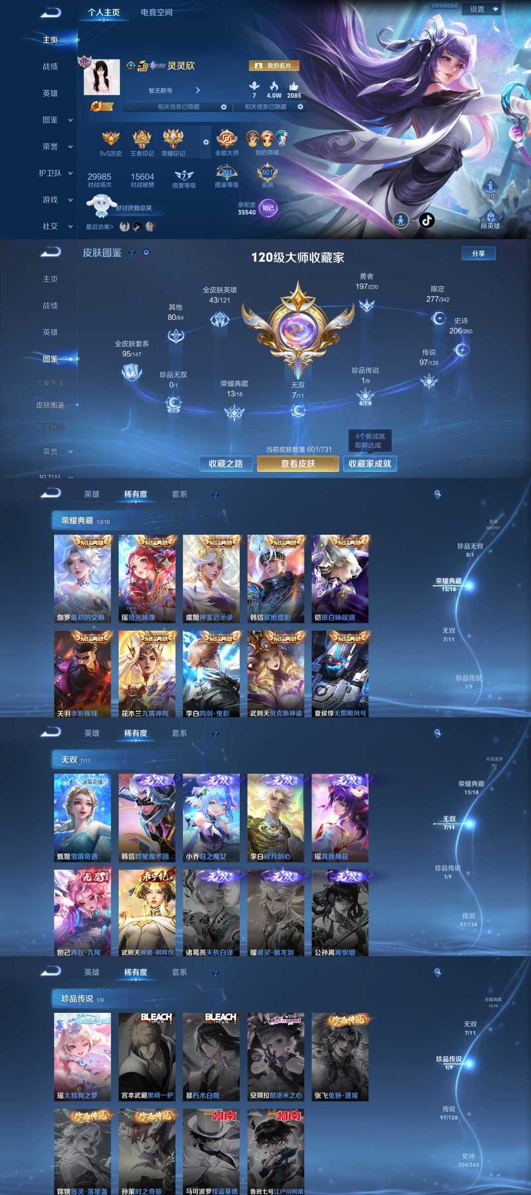 上不去看最后一张图游戏名字长租扫码上号无双贵族10,极品674皮,新皮肤基本全有,满珍品,7无双,10典藏,神威,炽阳神光,还有许多极品皮肤看图皮肤