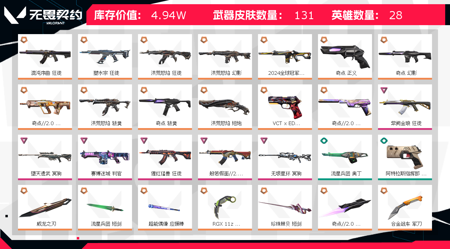 • 武器皮肤数量: 131