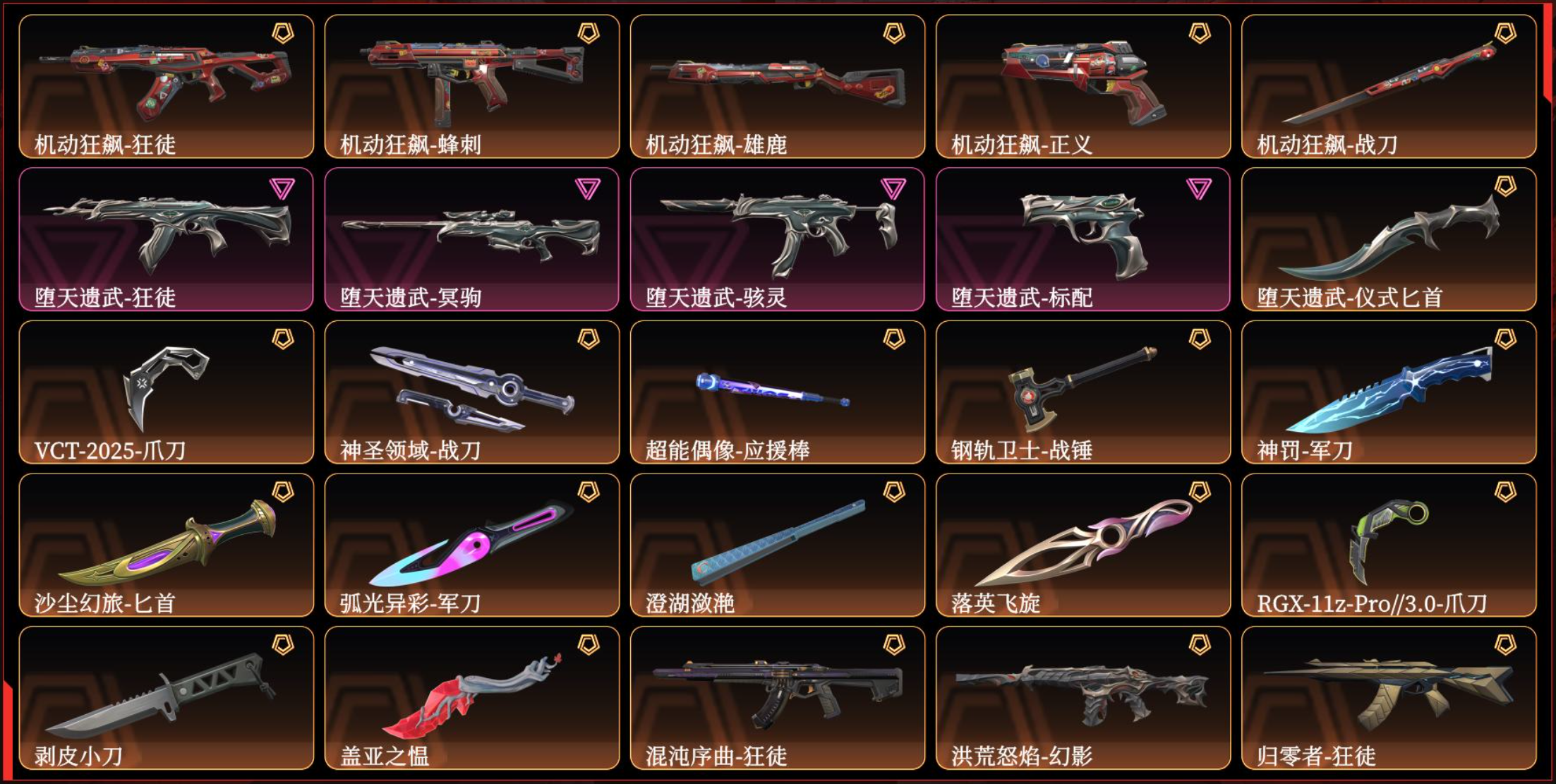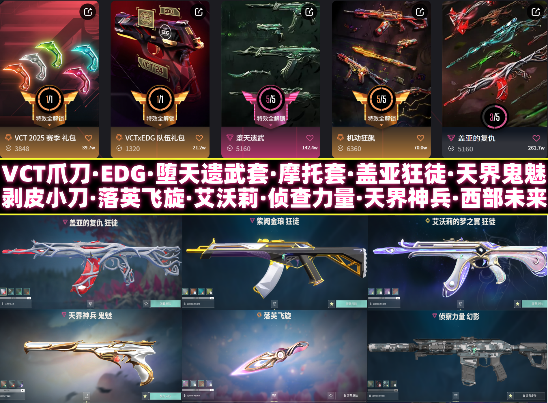 单买精品✅特效拉满✅剥皮小刀VCT爪刀RGX显卡盖亚混沌艾沃莉✅侦查力量✅天界鬼魅✅堕天遗武⚡摩托套