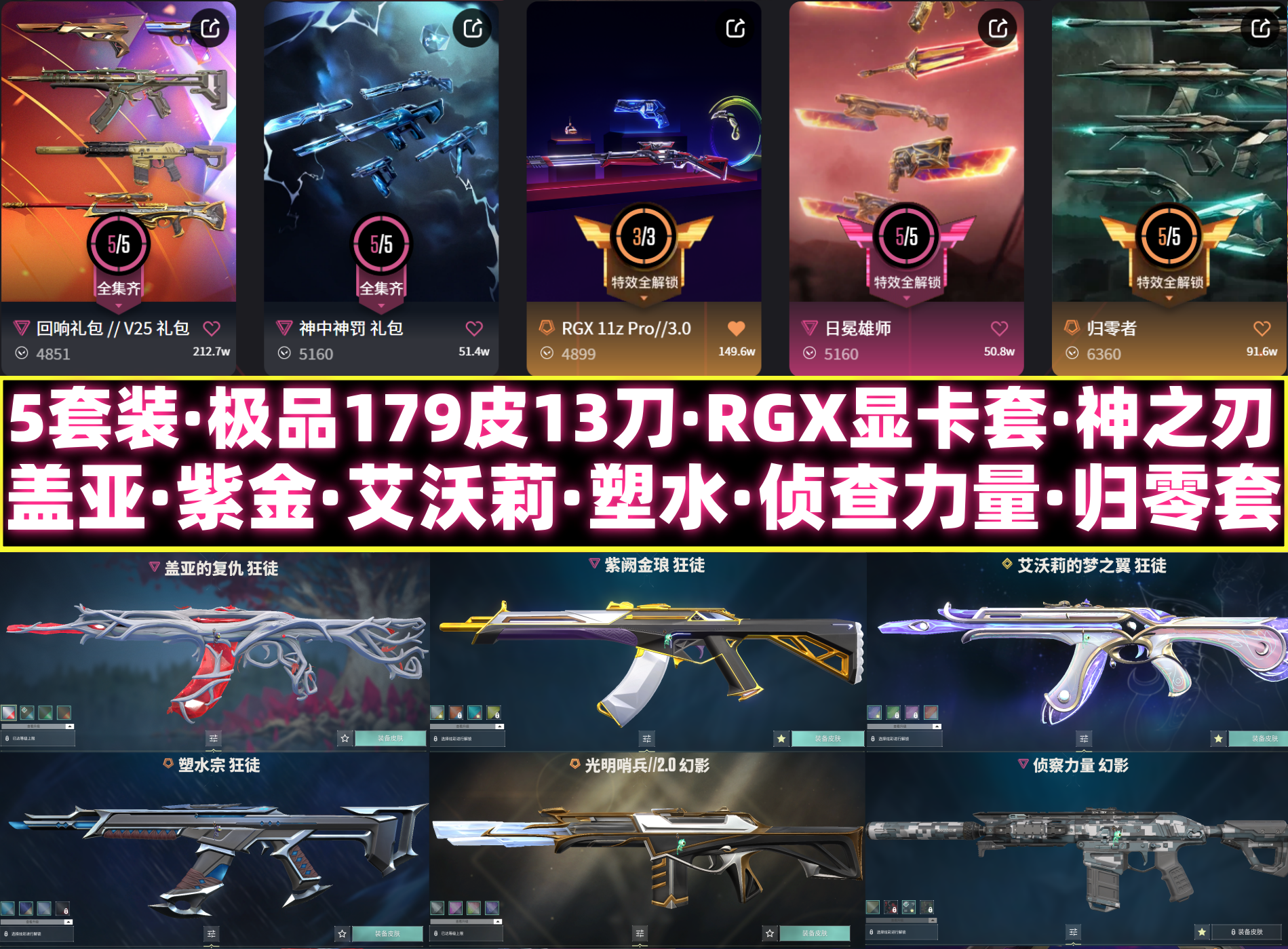 5套装⚡极品13刀179皮⚡神之刃RGX爪刀显卡套⚡盖亚混沌塑水艾沃莉⚡侦查力量⚡神中神罚紫金标配⚡