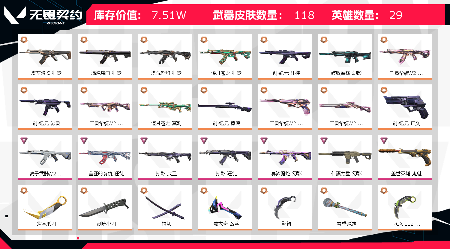 • 皮肤资产价值: 75080