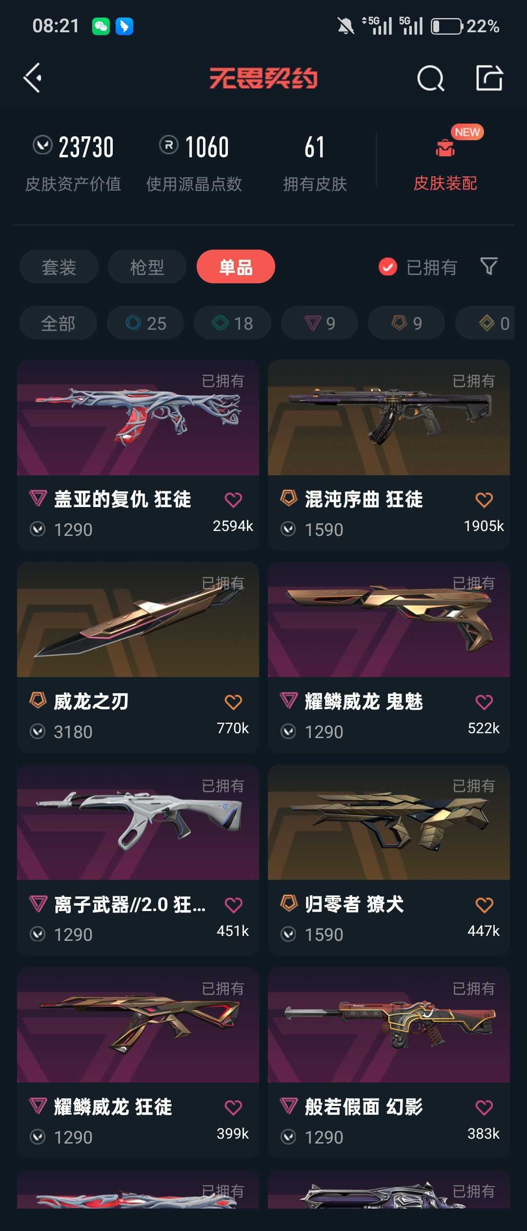• 武器皮肤数量: 61