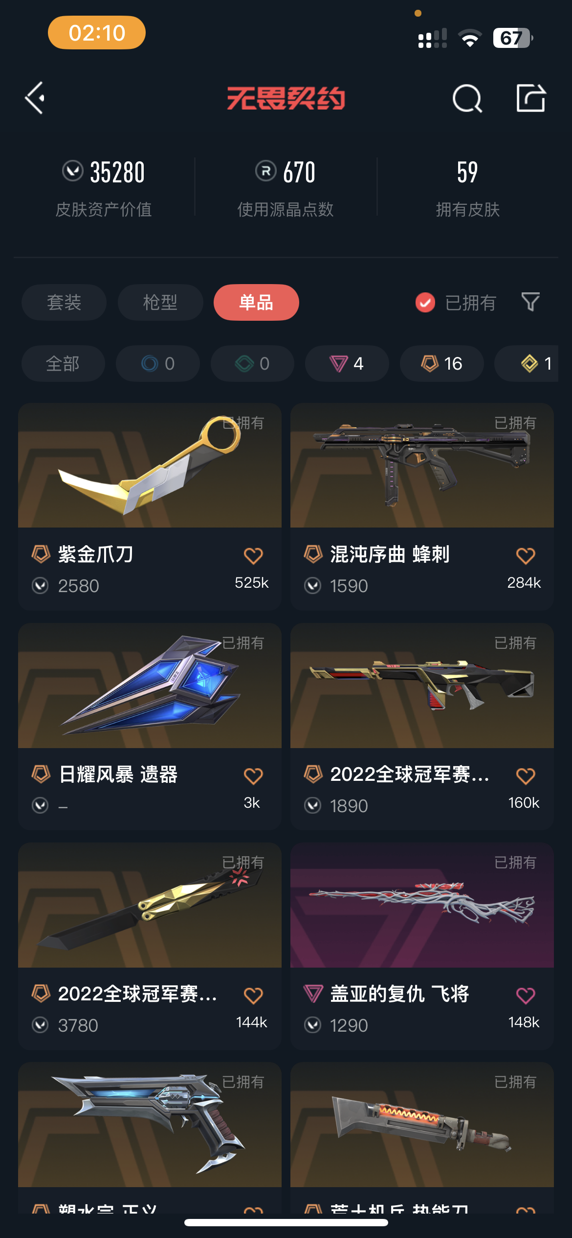 首页 > 租号大厅 > 无畏契约-wegame > wegame/wegame > 自动解冻!极品3.5W库存T0回火套22冠军套✨奇点冠军蝴蝶太刀闪存匕首黄金爪刀✨盖亚奇点掠影狂徒✨