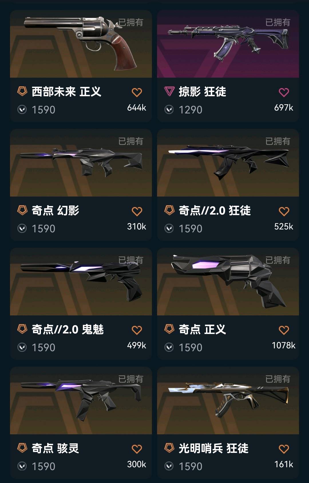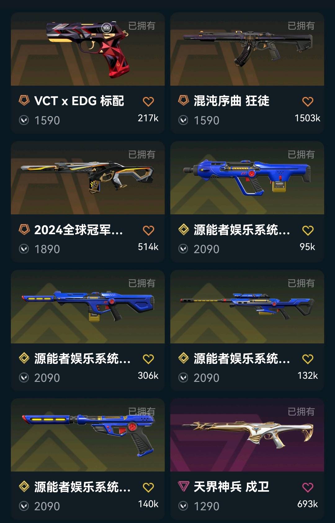 首页 > 租号大厅 > 无畏契约-wegame > wegame/wegame > 13W库存滋滋x特攻队21+22+24+25冠军套vct爪刀掠夺2.0套光谱套边陲套电玩套奇点套