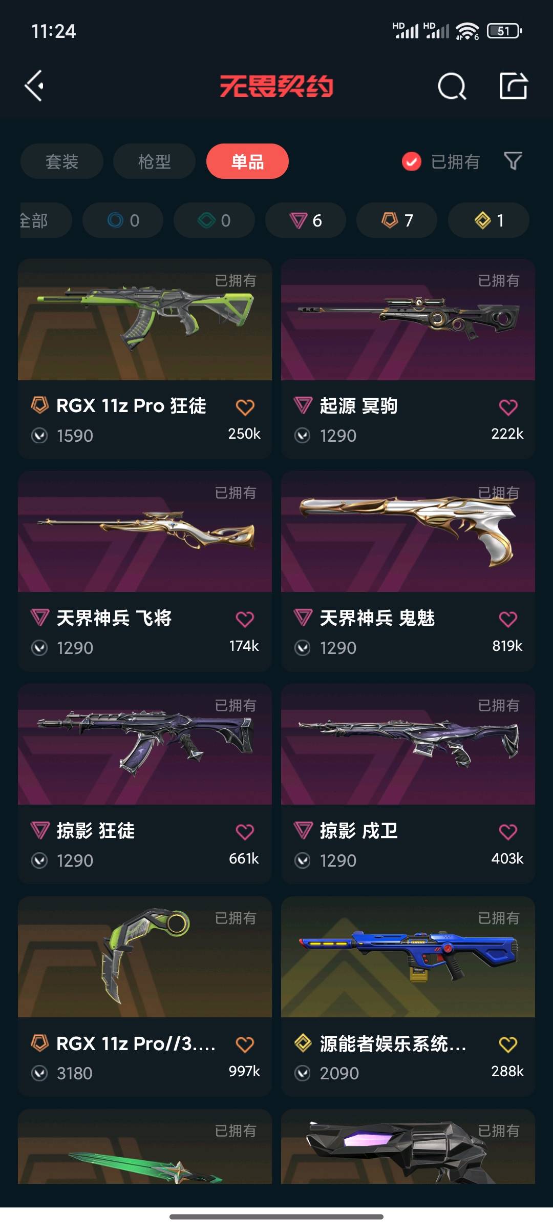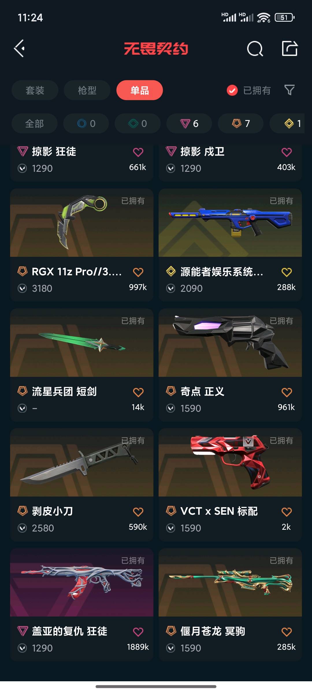 皮肤质量可以;剥皮小刀,盖亚的复仇 狂徒,掠影 戍卫,掠影 狂徒,源能者娱乐系统 幻影,RGX 11z Pro 狂徒,起源 冥驹,