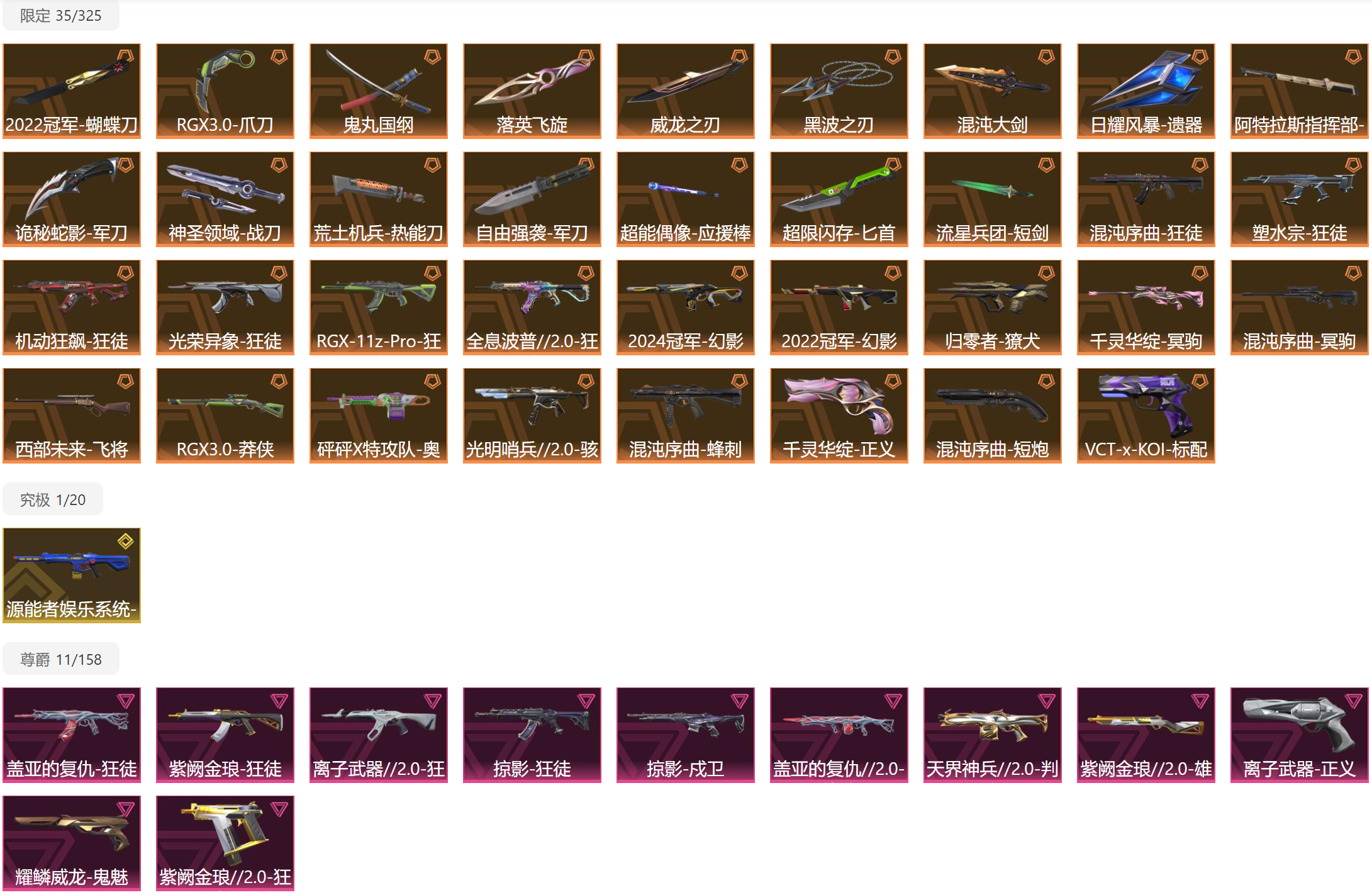 首页 > 租号大厅 > 无畏契约-wegame > wegame/wegame > 22冠军套混沌套24冠军幻影⚡极品16刀RGX3.0显卡爪刀黑波之刃蝴蝶刀⚡盖亚塑水宗掠影光荣异象⚡