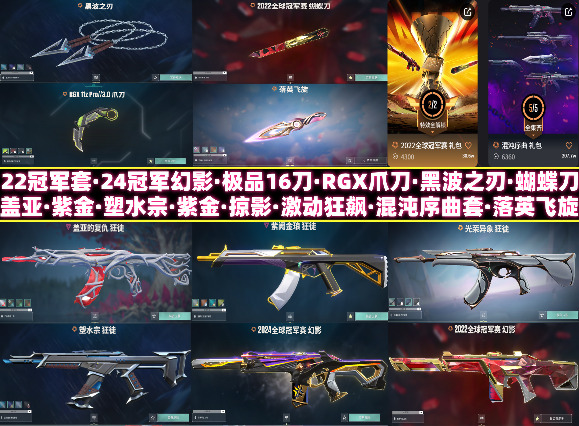 22冠军套混沌套24冠军幻影⚡极品16刀RGX3.0显卡爪刀黑波之刃蝴蝶刀⚡盖亚塑水宗掠影光荣异象⚡
