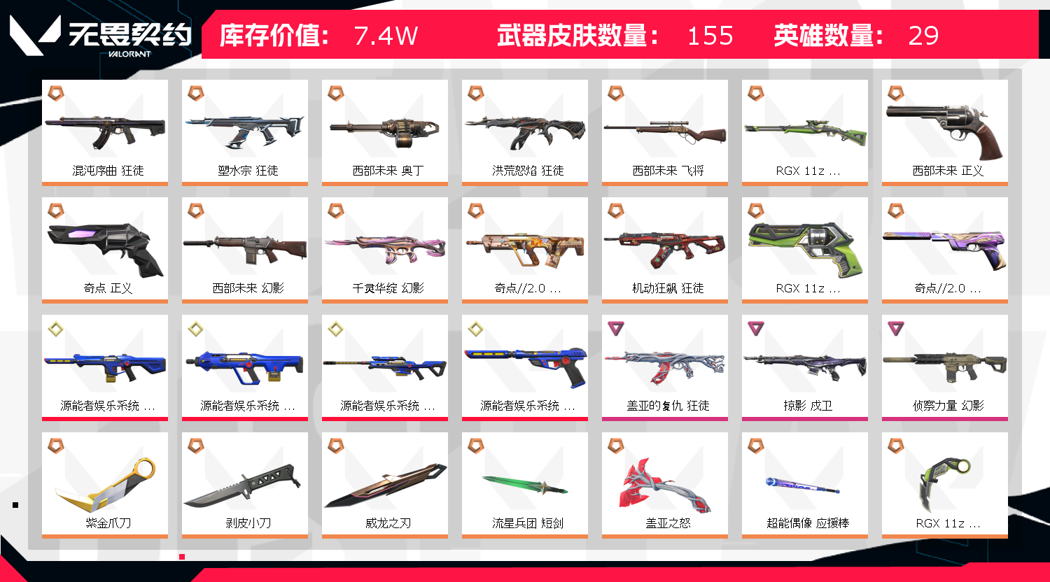 首页 > 租号大厅 > 无畏契约-wegame > wegame/wegame > 极品16刀⚡显卡爪⚡剥皮刀威龙蝴蝶紫金爪⚡套装:显卡西部奇点源能威龙⚡狂徒盖亚混沌塑水紫金侦查幻影樱