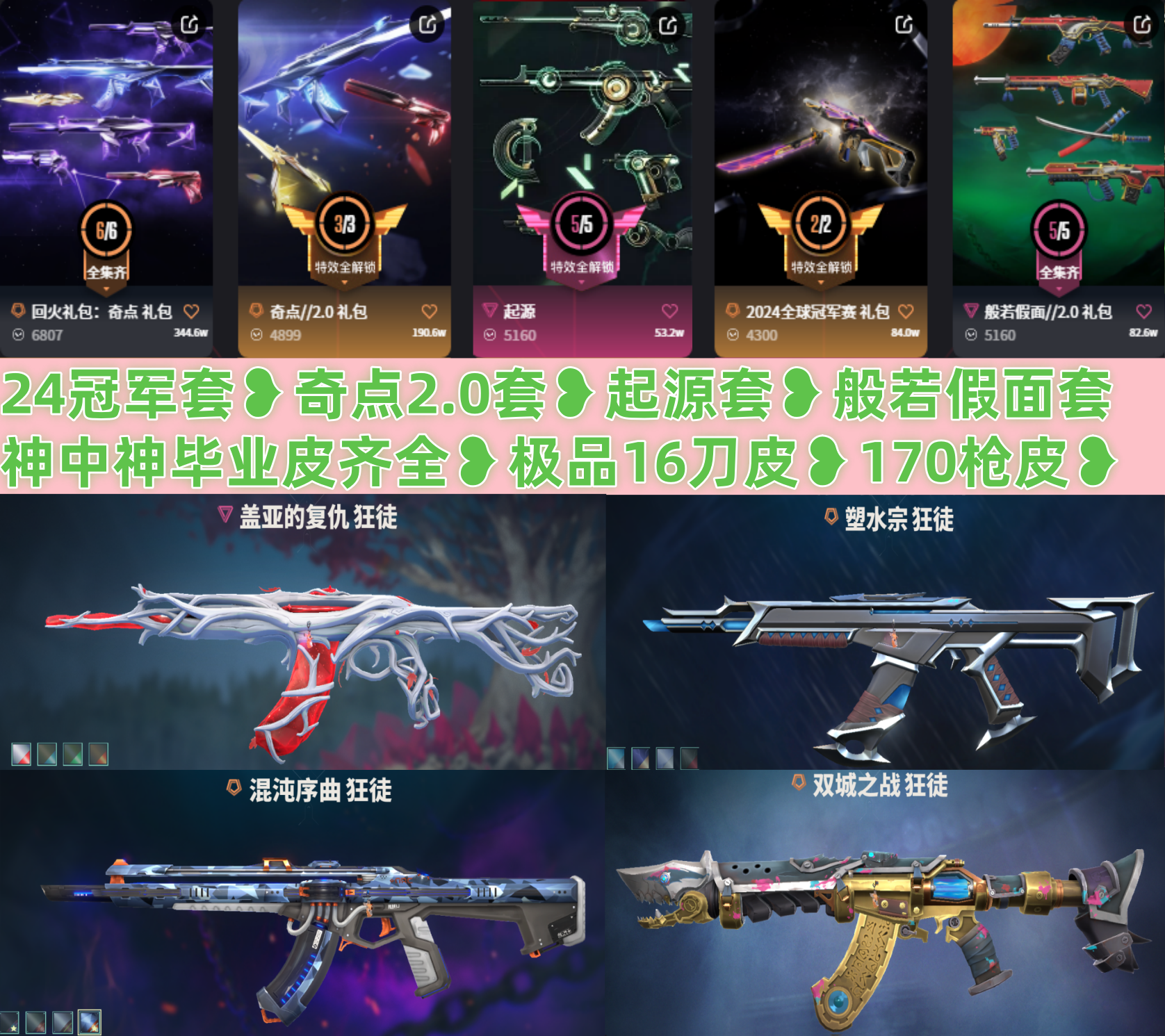 首页 > 租号大厅 > 无畏契约-wegame > wegame/wegame > 特效拉满毕业皮齐全⚡极品16刀皮⚡显卡爪蝴蝶刀鬼丸⚡混沌盖亚塑水宗狂徒21皮⚡24冠军奇点起源般若套