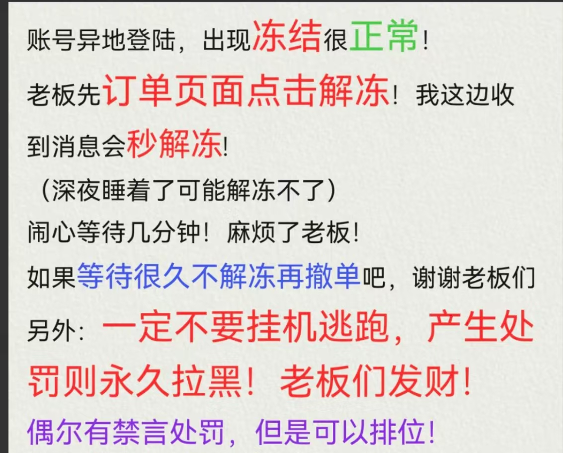 如遇异地冻结 请点击解除冻结! 点击解除冻结! 点击之后才能解除冻结! 后稍等几分钟即可正常登录,感谢等待 炸鱼请轻一点 禁止开挂,否则必报案追究 请勿挂机逃跑,谢谢配合。 账号退单问题请标注问题原因,我们会仔细查看;5周年//公测重制版 苍龙之刃,离子武器 正义,