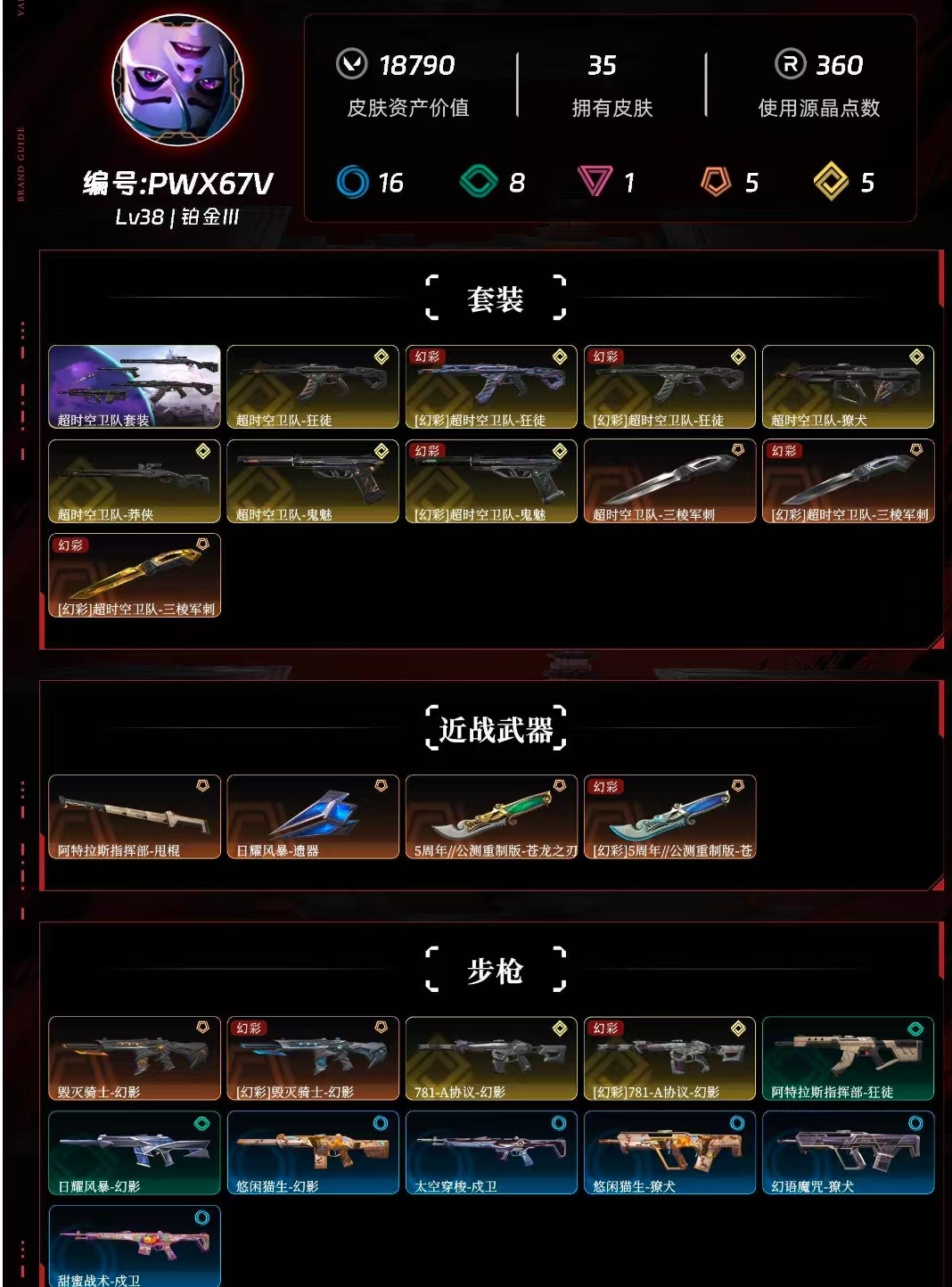 首页 > 租号大厅 > 无畏契约-wegame > wegame/wegame > 精品黑色系带妹小号❤炫彩卫队全套❤毁灭骑士/718幻影❤苍龙之刃❤