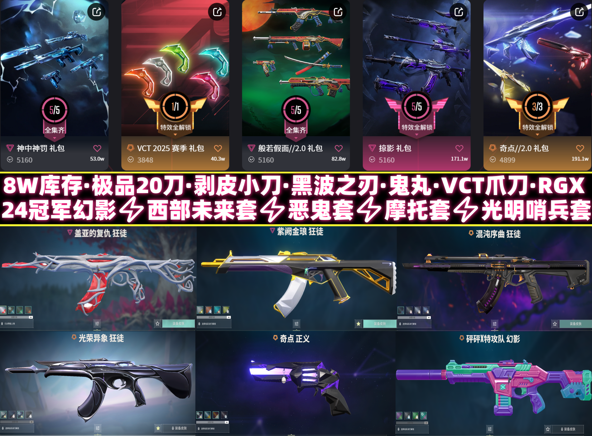 8W库存⚡极品20刀VCT爪刀RGX⚡黑波之刃⚡剥皮小刀⚡神之刃⚡盖亚混沌光荣异象⚡起点正义⚡神罚套